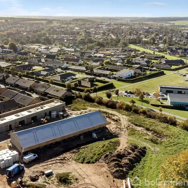 Åbent hus med tilmeldingskrav 15/2 - klik på billede - Under Bøgen kombinerer velindrettede rækkehuse med dejligt fælleshus, stort orangeri, grønne fællesområder og stærke værdier. Velkommen til Under Bøgen i Hinnerup, et nyt og attraktiv boligprojekt, hvor velindrettede boliger kombineres med adgang til lækre grønne opholdsrum mellem boligerne, foruden fælleshus og flot orangeri. Boligerne er klar til indflytning i foråret 2026. Allerede nu kan boligerne, grunden og byggeriet besigtiges på åbent hus eller ved fremvisning med mægler. Boligerne opføres af det lokale byggefirma, Thøgersen & Co som er anerkendt for at levere byggeri af høj kvalitet. Sælger og udviklerne af projektet har fra starten haft en vision om, at man ikke blot skal bo side om side, men man skal have mulighed for at være sociale sammen, og at omgivelserne indbyder til dette, når man ønsker det. Samtidig vil man have egen have, hvor man kan være for sig selv, og nyde omgivelserne, og den nye velindrettede bolig. Her bliver mulighed for tidligt i byggeprocessen, at få mulighed for at påvirke materialevalg i bl.a. køkken og bad, hvilket bliver leveret af Svane Køkken. Boligen: De rummelige 2 plans rækkehuse bliver opført i 2 typer. Type 110 og Type 125. Denne bolig er en type 110, og indrettes med 3 soveværelser på boligens 1. etage, hvoraf 1 værelse opføres med walk-in closet. Her er også badeværelse med bruseniche. Stueplan byder på god entré med adgang til gæstetoilet, stort og rummeligt køkken/alrum med i åben forbindelse med stue med vinkel omkring boligens trappe. Attraktiv beliggenhed og familievenlige rammer Under bøgen ligger centralt i Hinnerup i forhold til mange af hverdagens gøremål og tilbyder kort afstand til skole, daginstitutioner, lægehus og idrætsfaciliteter gør området perfekt til alle målgrupper. Under bøgen kombinerer roligt forstadsliv med nærhed til Aarhus og Hinnerups byliv – inkl. indkøb, kultur og togforbindelse til Randers, Aarhus og Viborg. Hinnerup er en by i vækst, men med sjælen i behold. Et aktivt lokalsamfund, stærke naboskaber og gode fællesskaber gør det nemt at føle sig hjemme. Uanset om du søger et roligt seniorliv eller bare ønsker at være en del af noget større, er Hinnerup et sted, hvor du kan trække vejret dybt – og mærke, at livet giver mening. I Hinnerup finder du Rønbækskolen, HInnerup badet blot få 100 meter fra bebyggelsen og en af lang række veldrevne idrætsforeninger, som er med til at binde byen sammen, og skabe et helt unikt sammenhold.