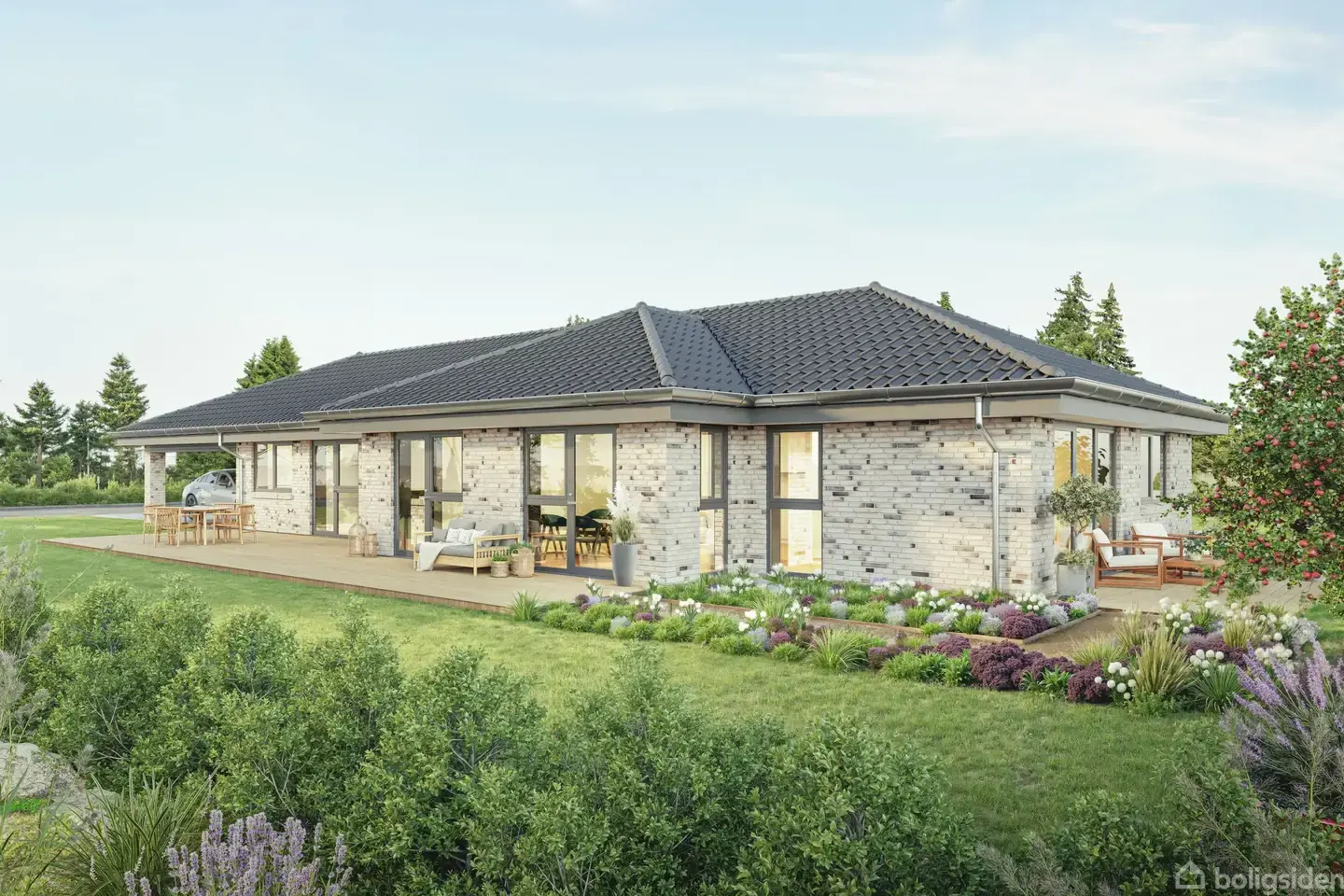 Den nye udstykning i Grundfør på Herstvej og Sandballevej er et moderne boligområde med i alt 17 boliger fordelt på 7 dobbelthuse og 10 parcelhuse. Byggeriet er godt i gang og de første beboere er flyttet ind.På byggegrundene kan du bygge et klassisk længehus i forskellige udformninger og størrelser. Husene kan opføres med integreret carport eller fritliggende carport. Uanset hvilken løsning du vælger, er carport og redskabsrum inkluderet i prisen.Det viste eksempel er et 180 m2 længehus med int