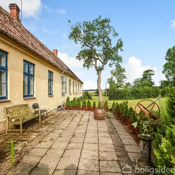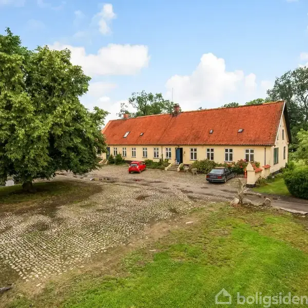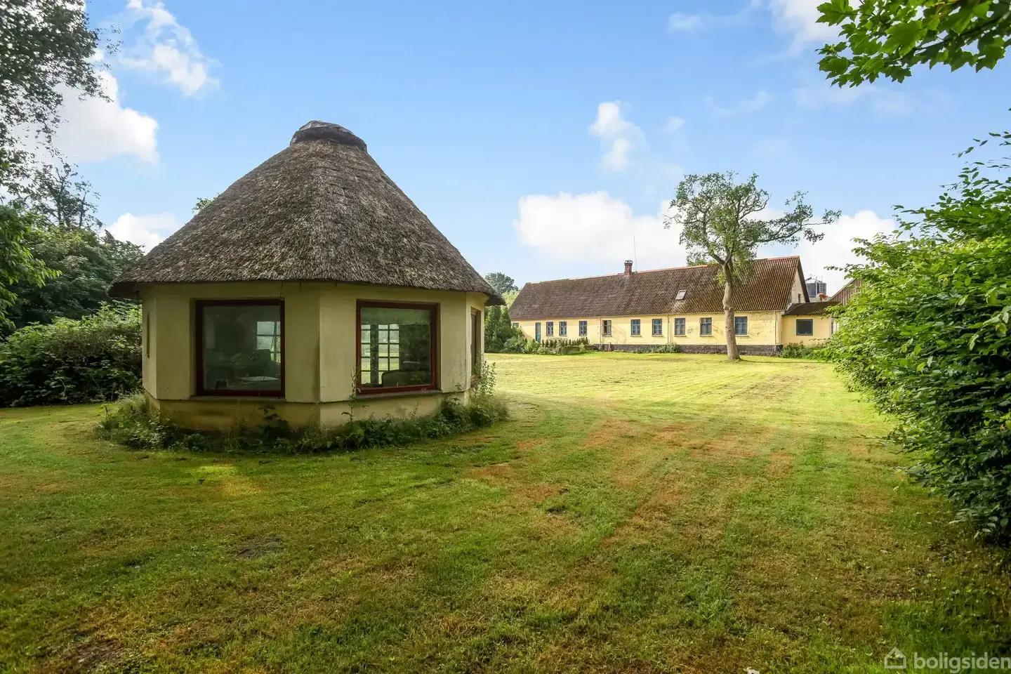 Velkommen til en historisk ejendom, der engang har været ejet af kongehuset, og som mange steder er holdt i oprindelig stil med ca. 2,7 HA jord og mulighed for at tilkøbe eller leje ekstra jord. Den store, gamle lind som står midt på gårdspladsen er fra ca. 1900, og blev plantet samtidig med genopbygningen af ejendommen efter en brand i nogle staldlænger. Den står livskraftigt og viser sammen med bygninger og toppede brosten stedets store charme og sjæl. 'Dammen' er faktisk resterne af en voldgrav fra 1600-tallet, dengang kongehuset ejede stedet. Senere blev det en del af landets såkaldte ryttergodser (Koldinghus), som holdt den nationale hær kørende.Ejendommen har bibeholdt det oprindelige tegltag på én side samt de oprindelige vinduer monteret med forsatsruder på modsatte side. Ejendommen består af en hovedbygningen, der indeholder bolig på 271 kvm samt en lejlighed på 70 kvm. Stor lukket gårdsplads, omkranset af stald- og garagebygningerne. Du få her ca. 2.400 kvadratmeter garage/stald-,/udbygninger, med masser af plads - uanset om du driver erhverv hjemmefra - håndværkserhverv, gårdbutik, kunst&antik og meget andet eller ønsker at holde heste, får eller andet dyrehold. Ejendommen kan også danne de perfekte rammer om en flerfamilies bolig eller bo-fællesskab.I 'parken' bag huset kan eftermiddagen nydes i og omkring et hyggeligt tehus. Hovedhuset rummer meget af ejendommens oprindelige byggestil, og selvom ændringer er sket med tiden - ejendommen er trods alt fra 1843 - er der rum med exceptionelt interiør og indretning, som passer med perioden. Boligen indeholder stor entré med trappeopgang til 1.salen - forklædt som et stort skab - førstesalen her indeholder 2 store værelser. 2 store stuer, køkken, der står i åben forbindelse med højloftet stue med brændeovn. Ikke desto mindre emmer det store højloftede rum af oprindelighed og historie i farvevalget og bevarede detaljer. 5 værelser i forskellige størrelser, badeværelse med nedsænket badekar, gæstetoilet, bryggers med installation til vaskemaskine og tørretumbler og udgang til entre med adgang til lejlighed på 70 kvm og egen indgang samt opgang til førstesal indeholdende 2 værelser med eget køkken. Ejendommen har beplantet filteranlæg, det vil sige natur-rens af spildevand. Ejendommen trænger generelt til renovering, men for den rigtige er her uanede muligheder. Så leder du efter en ejendom med masser af historie og muligheder - så skynd dig at bestille en fremvisning af denne unikke ejendom.Sælger fremviser selv ejendommen.