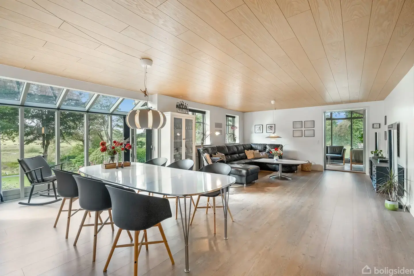 Velkommen til denne skønne og indflytningsklare bolig, som kombinerer klassisk charme med moderne komfort og rummelighed. Her får du en bolig med god plads - både inde og ude - og en gennemtænkt planløsning, som egner sig perfekt til familien, den pladskrævende hverdag eller dig, der ønsker hjemmekontor og hobbyrum. Du træder ind i en praktisk entré med adgang til bryggers og husets store garage. Herfra føres du videre ind i boligens fordelingsgang, hvor værelserne ligger. Som rummer 2 gode være