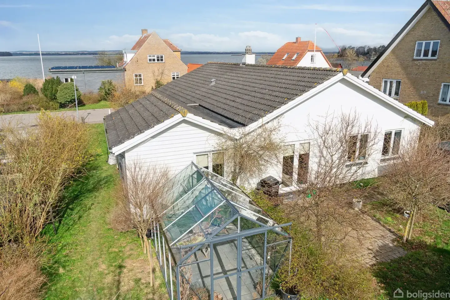 På Hestehavevej 58 får I en superflot villa fra 1959 på en af Præstøs mest populære adresser med kort afstand til den gamle bydels butikker og romantiske huse. Etplansvillaen er på 141 m² og ligger med udsigt over Præstø Fjord. Til ejendommen er der desuden tinglyst ret til at benytte det foranliggende grundstykke, så I kan sætte jolle i vandet. Villaen er moderne indrettet med et stort køkken-alrum i forlængelse af stuen. Køkkenet er stilfuldt med blå fronter, ny håndvask fra 2024 og træbordplade, hvortil brændeovnen skaber varme og rar stemning i opholdsrummet. Den gode loftshøjde, det lyse trægulv og de to udgange til haven sikrer derudover et rart lys til både spiseområdet og sofahjørnet. Hjemmet rummer tre fine værelser, hvilket gør det muligt for eksempel at indrette børneværelser eller hjemmekontor. Familiens praktiske pligter kan dertil nemt klares i bryggerset, som ligger ved siden af badeværelset, hvor brusenichen har nyt armatur fra 2024. I haven finder I flere dejlige terrasseområder på forskellige sider af villaen, så I altid kan få sol og læ i løbet af dagen. Fra den store træterrasse ved den sydvestvendte side kan man endda skimte udsigten til vandet. På bagsiden af ejendommen er der drivhus og en fin græsplæne med forskellig beplantning. Fra denne vej ud til vandet er I tæt på stort set alt i Præstø, da I både kan gå til Børnehuset Tusindfryd og Præstø Skole inden for en kilometer, og i samme afstand har I offentlig transport, bibliotek samt smuk natur og flere legepladser. Med kysten ud til Præstø Fjord og Præstø Havn i gåafstand kan I også nemt nyde godt af byens naturskønne placering og de mange aktiviteter i løbet af året.