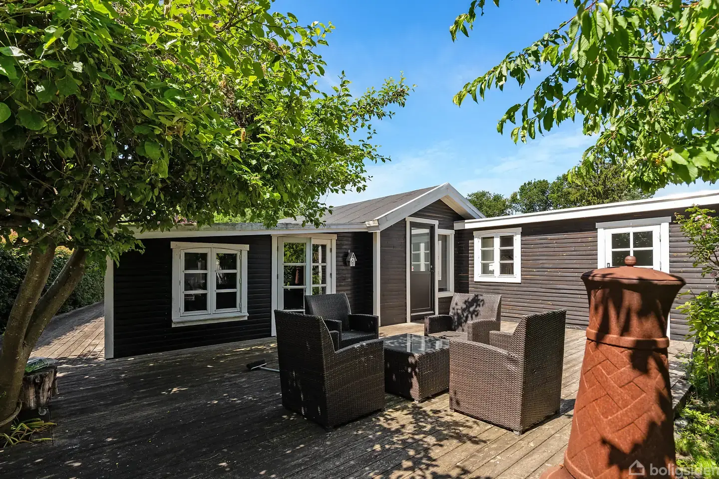 Velholdt fritidshus med ugeneret have og stor træterrasse