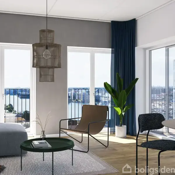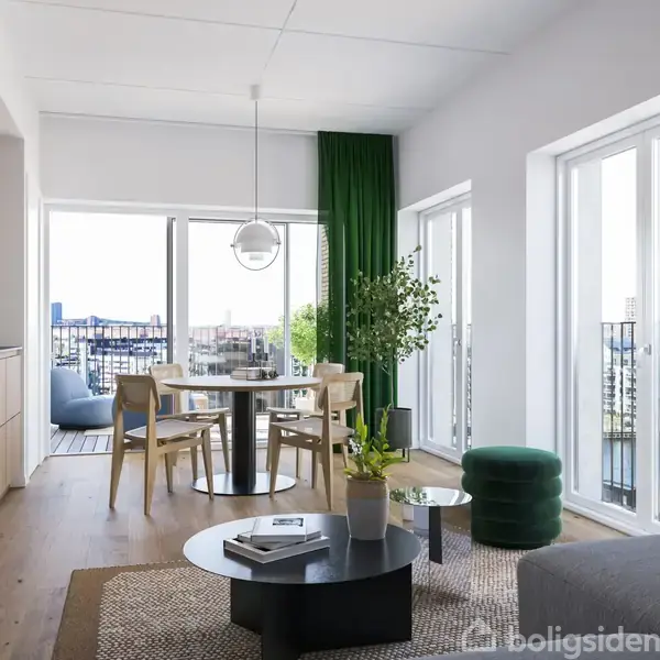 I Havnebryggen Capella finder du denne smukke 93 m² lejlighed, der kombinerer moderne arkitektur med en af Islands Brygges mest eftertragtede beliggenheder. Her bor du i 2. række til vandet, hvor havnens rolige stemning og det maritime miljø bliver en naturlig del af hverdagen. Lejligheden er indrettet med fokus på lys, luft og funktionalitet. Det store opholdsrum samler køkken, spiseplads og stue i én harmonisk enhed, hvor de store vinduespartier trækker dagslyset helt ind og skaber en åben, indbydende atmosfære. Fra stuen er der direkte udgang til den sydvestvendte altan, som giver eftermiddags- og aftensol – perfekt til afslapning, grill eller et glas vin med udsigt til himmel og havnens liv. Planløsningen rummer desuden et rummeligt soveværelse, et ekstra værelse med mange anvendelsesmuligheder samt et stilrent badeværelse med moderne materialer og separat brus. Alt er udført i høj kvalitet, og lejligheden fremstår som et roligt, elegant hjem midt i byen. Her får du en bolig, hvor beliggenhed, arkitektur og komfort går op i en højere enhed. OBS. “Billederne er visualiseringer og kan afvige fra den konkrete bolig.” “Der gøres opmærksom på, at alle viste billeder er visualiseringer og viser ikke billeder af den specifikke bolig.”