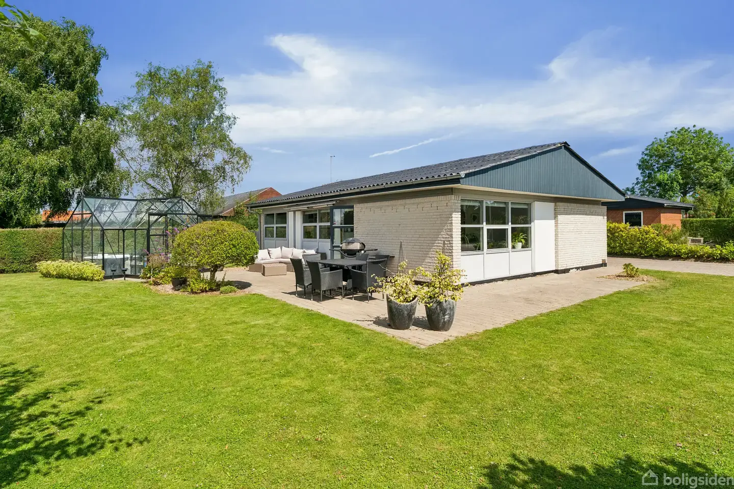 Indbydende og renoveret ét-plans villa, med dejlig have - beliggende på lukket villavej.