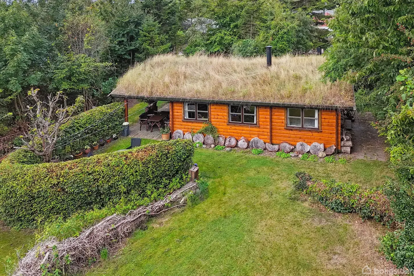 Idyllen er ikke til at overse, når det gælder sommerhuset her – bygget af gedigne bjælker og toppet med et græsbegroet tag. Atmosfæren er præcis så hyggelig og imødekommende, som I foranlediges til at tro, og de samme tillægsord beskriver også fint det eventyrlige udemiljø. Velkommen til Stillinge Strand. Fra jeres fredelige hjemmeadresse er der kun få minutters gang til vandet, hvor mange friske feriemorgener og lange eftermiddage vil udspille sig. 500 meter adskiller jer fra den lokale købman