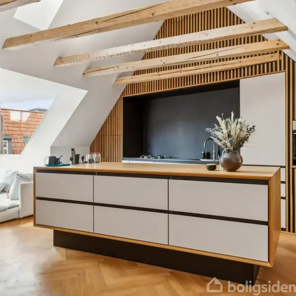 Lejlighed i to plan i hjertet af Aalborg Velkommen til denne charmerende ejerlejlighed på 121 kvadratmeter, beliggende i hjertet af Aalborg. Her får du en bolig, der kombinerer moderne komfort med historisk charme, perfekt til både afslapning og socialt samvær. Et hjem i topmoderne kvalitet Den indbydende atmosfære og de velvalgte detaljer skaber en varm ramme for dit nye hjem. Lejligheden byder på tre rummelige værelser, der kan tilpasses dine behov, samt et lyst og åbent køkken-alrum på først