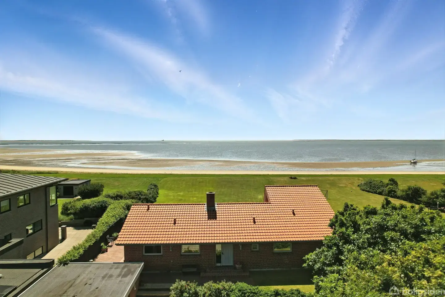 ENESTÅENDE BOLIG MED PANORAMAUDSIGT OVER HAVET!Velkommen til Hjerting Strandvej 195 – en bolig med en beliggenhed, der ganske enkelt er udover det sædvanlige. Her får du en unik mulighed for at eje et hjem, hvor udsigten og nærheden til naturen spiller hovedrollen. Ejendommen ligger direkte ud til vandet på en imponerende grund på hele 2.900 m², og uanset hvor du befinder dig i huset, føles det som at kigge ud over et levende maleri. Et par skridt fra hoveddøren finder du strand