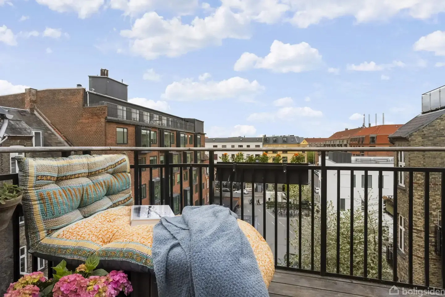 Nu har du muligheden for at erhverve dig en unik bolig på toppen af Østerbro. Lejligheden er øverst beliggende og byder på masser af lys og luft omkring sig. Her bliver man mødt af en pæn opgang som fører dig op til lejligheden. Lejligheden indeholder stor stue i åben forbindelse med køkkenet, værelse med udgang til lejlighedens solrige terrasse, hvidt flisebadeværelse samt yderligere 2 store gode værelser, hvor man nemt kan opdele det ene, hvis behovet er til det. Der er også et uudnyttet spids