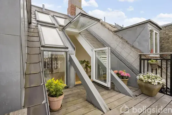 Penthouselejlighed med egen tagterrasse og uudnyttet spidsloft