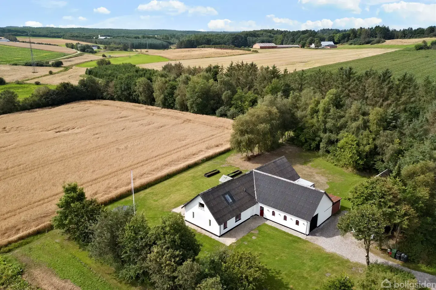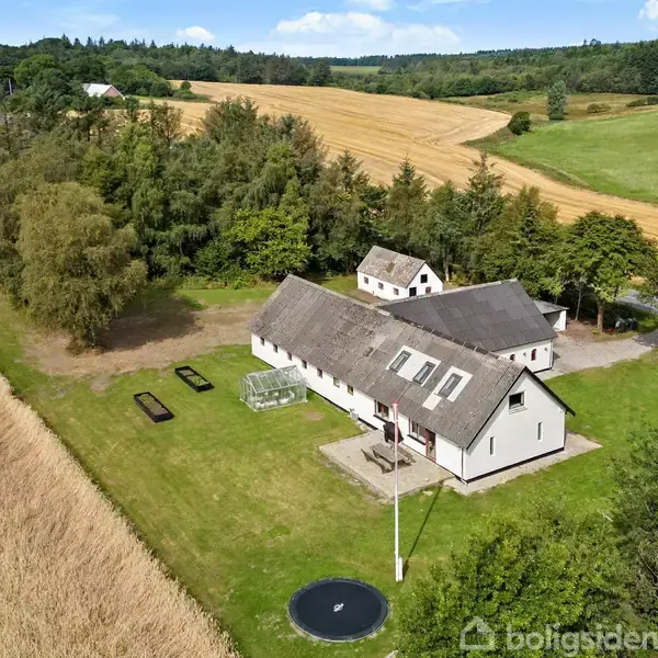 Åbent hus med tilmeldingskrav 7/3 - klik på billede - MODERNISERET LANDEJENDOM MED 5.9 HA. OG MED JORDVARME – ENERGIMÆRKE B Beliggenhed Denne moderniserede landejendom er smukt beliggende nær Fosdalen – et af Danmarks mest naturskønne områder med vandrestier, MTB-ruter, skov og åbne vidder. Grunden på knap 6 ha. rummer både skov, marker og eng, hvilket giver masser af muligheder for dyrehold, jagt og friluftsliv. Tranum by ligger blot 3 km væk med skole, foreningsliv og indkøb, og skolebussen kører direkte forbi ejendommen. Desuden er der kort afstand til Vesterhavet og Tranum Strand, mens Aalborg kan nås på ca. 35 minutter. Ejendommen Stuehuset er opført i 1934 og gennemgik en gennemgribende renovering i 2016, hvor der bl.a. blev etableret nyt køkken og badeværelse. Ejendommen fremstår lys, indbydende og klar til indflytning. Hertil kommer flere gode udhuse (med ny tagbelægning) – stald, lade, værksted og garage – som åbner for mange anvendelsesmuligheder, uanset om det er hobby, dyrehold eller opbevaring. Udenfor findes en skøn, solrig have med terrasse, højbede og drivhuse, perfekt til både afslapning og dyrkning. Indretning Boligen er ifølge BBR på 156 m², heraf 53 m² på 1. sal. Stue planet rummer entré med klinkegulv, lyst køkken/alrum med god spiseplads, dejlig stue med udgang til sydvendt terrasse og udsigt over markerne, soveværelse med adgang til eget badeværelse, endnu et nyere badeværelse med stor bruseniche, bryggers samt disponibelt rum. På 1. sal findes 3 gode værelser med trægulv samt stort repos. Opvarmning Ejendommen opvarmes med jordvarme og er hulmursisoleret, hvilket sikrer lav varmeudgift og energimærke B. Der er gulvvarme i hele stueetagen (undtagen soveværelset), hvilket giver en behagelig komfort i dagligdagen. Hertil er der indlagt fiberforbindelse fra Norlys, så hjemmet også er fuldt opdateret til moderne behov.