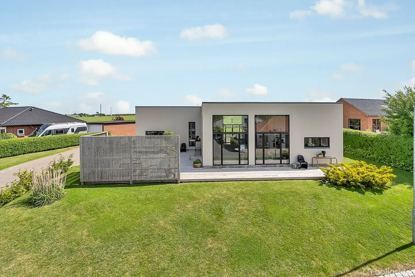 Velkommen til denne storslåede moderne villa, beliggende i det eftertragtede boligkvarter på Hjortebakken i den nordlige del af Grenaa. Denne unikke bolig tilbyder en ideel kombination af moderne komfort og naturskønne omgivelser. Når du træder ind i huset, bliver du straks mødt af den imponerende høje loftshøjde, som skaber en følelse af rummelighed og luftighed. Indretningen er åben og inkluderende, hvilket gør det nemt at interagere og nyde samvær med familie og venner. En af villaens mange f