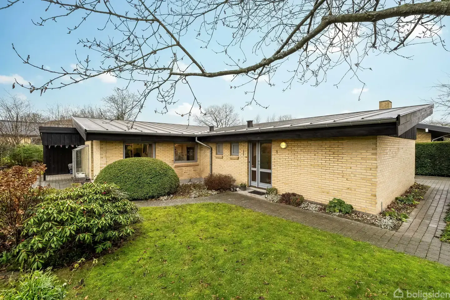 Hjortespringet 1 er et hus, hvor rummeligheden opleves med det samme. Loftshøjden er tydelig allerede udefra som et markant arkitektonisk udtryk og fortsætter indenfor, hvor lysindfald og en rolig atmosfære præger boligen. Husets taghældning på 15 grader giver højt til loftet langs hele den ene side i alle rum og bidrager til en indbydende rumfornemmelse i hverdagen.Boligen rummer 131 veldisponerede kvadratmeter med en planløsning, der har fungeret gennem flere livsfaser. Den rummelige vinkelstu