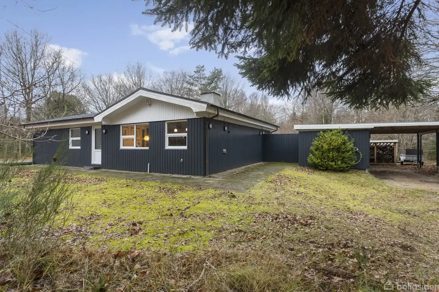 Charmerende og moderniseret fritidshus i naturskønne omgivelser Midt i den fredfyldte skov ved Lyngså finder du dette charmerende og moderniserede fritidshus på Hjortespringet 17. Her får du 101 m² bolig i rigtig flot stand, omkranset af en smuk naturgrund på hele 5.010 m² – et oplagt fristed for dig, der drømmer om ro, privatliv og naturen helt tæt på.Når du træder ind i huset, mødes du af en entré, der ligger i åben forbindelse med en fordelingsgang, som elegant fører dig videre til alle bolig