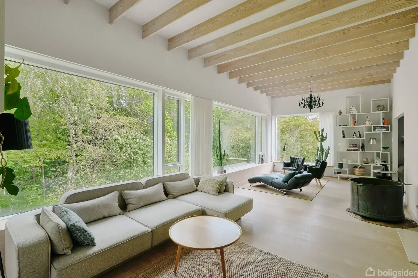 Nordisk villa i første række til skovens ro – japansk-inspireret arkitektur, nordiske materialer og kompromisløs æstetik. Kan et hjem i balance inspirere til et liv i balance? Her på Hjortevænget 14 i Højbjerg finder du en enestående bolig, der netop har sat sig det mål. De rene linjer, den gennemtænkte indretning og den fredelige beliggenhed skaber yderst æstetiske og harmoniske rammer om din og familiens hverdag. Villaen er samtidig i harmoni med de naturrige omgivelser på flere måder: Den