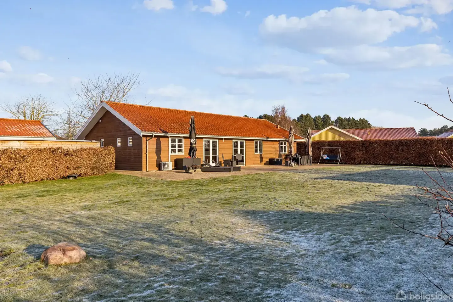 Nu har du muligheden for at blive ejer af denne attraktive og velholdte étplansvilla på 152 m², opført i 2001, beliggende på en skøn grund på 1.376 m². Ejendommen ligger i et roligt og fredeligt kvarter, hvor naboerne hilser på hinanden, og hvor fællesskab og tryghed er i højsædet. Boligen byder dig velkommen i en lys og indbydende entré med god plads til overtøj og opbevaring. Der er tre rummelige værelser, alle i gode størrelser og fleksible i anvendelse – hvad enten behovet er børneværelser, kontor eller gæsteværelse. Planløsningen er ideel med en klar opdeling mellem forældreafdeling og børne-/teenageafdeling. Forældreafdelingen har desuden walk-through-closet og eget badeværelse. Boligens bryggers har direkte adgang udefra og byder på masser af skabs- og opbevaringsplads – praktisk og funktionelt i hverdagen. Husets hjerte er det skønne køkken-alrum, som ligger i åben, men let adskilt forbindelse med stuen. Her er der plads til både samvær og hygge, mens maden tilberedes, og de store opholdsrum skaber en naturlig ramme om familielivet. Fra alrummet er der direkte udgang til den solrige syd/vestvendte have, hvor der er rig mulighed for udeliv, leg og afslapning. Ejendommen rummer to lækre badeværelser, begge indbydende og med separat bruseniche. Til ejendommen hører en imponerende dobbeltgarage på hele 61 m² – perfekt til biler, værksted, hobby eller ekstra opbevaring. Her er det kun fantasien (eller antallet af biler), der sætter grænser. Alt i alt en yderst velindrettet og indflytningsklar villa i et attraktivt område – en bolig, der absolut er et kig værd. Vi glæder os til at byde dig velkommen indenfor.