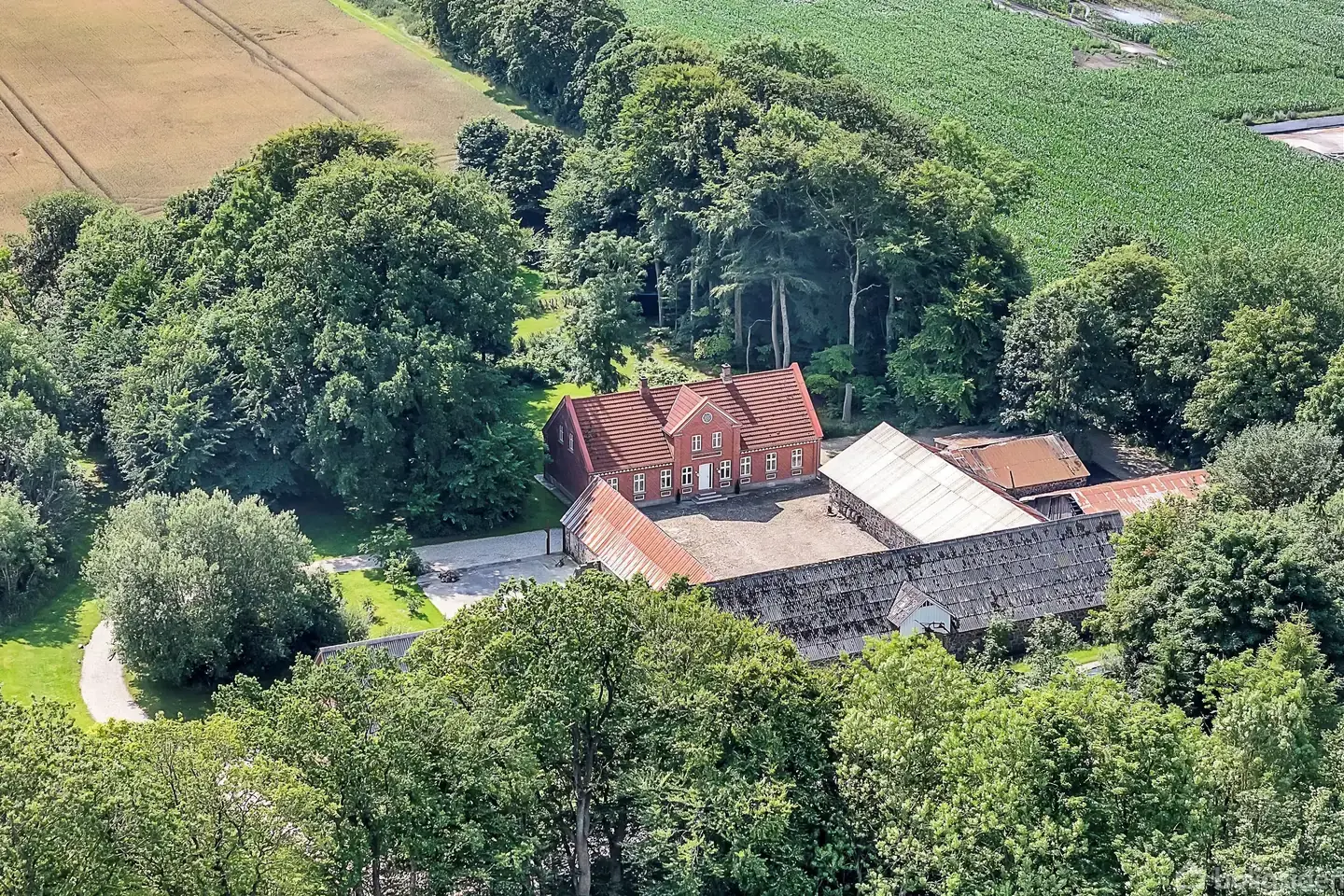 Åbent hus med tilmeldingskrav 3/2 - klik på billede - Et hjem med historie – og respekt for den Velkommen til Hjortholmvej 24 – en naturskønt beliggende, nedlagt landejendom, hvor stuehuset står med den helt rette balance mellem original charme og moderne komfort. Hele herligheden er placeret på en stor naturgrund, hvor stuehuset og have er omkranset af høje træer og udsigt til det grønne. Her er bare en helt særlig atmosfære og masser af ro. 182 m² bolig med hjerterum og originale detaljer Stuehuset byder på hele 182 m² bolig med originale plankegulve (slebne og ludbehandlede), pudsede vægge og fine, malede lofter. Du får 7 værelser i alt – heraf 3 stuer en suite, der giver rigeligt med plads til både hverdag og samvær. Her er nyt el i hele boligen, nye varmerør og installationer, og en varmepumpe sørger for en driftssikker og effektiv opvarmning. To badeværelser med kant og karakter Boligen har to badeværelser, hvoraf det ene er indrettet med de originale klinker kombineret med moderne inventar – en perfekt balance mellem det klassiske og det funktionelle. Plads til fremtiden – 100 m² uudnyttet loft og mere til På første sal finder du to værelser samt et stort uudnyttet loftsareal på cirka 100 m². Her er der oplagte muligheder for at skabe endnu flere boligkvadratmeter – hvad end du drømmer om atelier, teenageafdeling, kontor eller ekstra soveværelser. Store udbygninger – og højt til loftet, både fysisk og mentalt Ejendommens udbygninger tæller både stald (ca. 250 m²), lade (ca. 270 m²), udhus (ca. 140 m²) og en imponerende, og nyere stålbuehal med støbt gulv, på ca. 300 m² – med loft til kip. Her er masser af plads til håndværk, dyrehold, opbevaring, hobby og drømmeprojekter i stor skala. Grøn idyl på 13.828 m² grund, med mulighed for tilkøb Grunden er lige så rummelig som mulighederne. De 13.828 m² indbyder til natur, leg, friluftsliv og måske en køkkenhave i morgensolen. Haven omkring stuehuset er skærmet af træer og giver en tryg, grøn oase med både udsigt og privatliv. Hvis der er ønske om mere jord, er der mulighed for tilkøb af op til 4 Hektar ekstra jord.