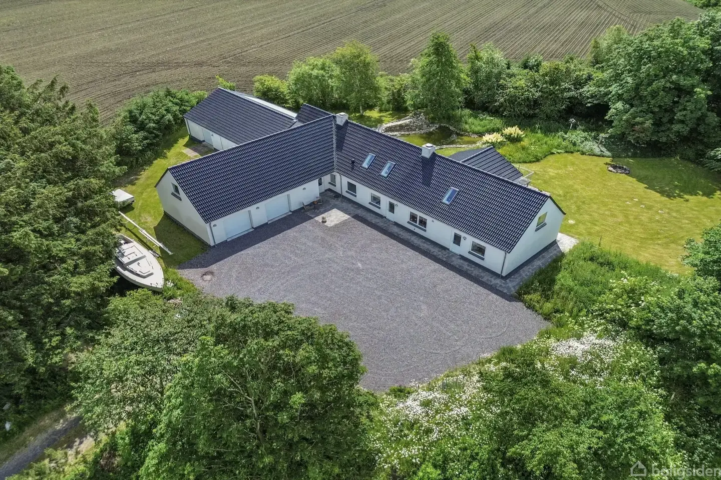 Opdag en sand perle på Hjortnæsvej 15, en imponerende landejendom beliggende i en helt privat og ugeneret del af landskabet, omkranset af vidstrakte marker. Denne ejendom, fordelt på to plan, er perfekt for dem, der søger rum til både liv og hobbyer, med et grundareal på 1 hektar og adskillige velindrettede udhuse. Stueetagen byder på en lys stue med en effektiv masseovn og direkte adgang til køkkenalrummet med et moderne Kvik-køkken fra 2012, der skaber en naturlig forbindelse mellem madlavnin