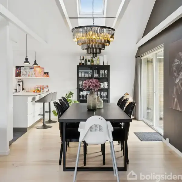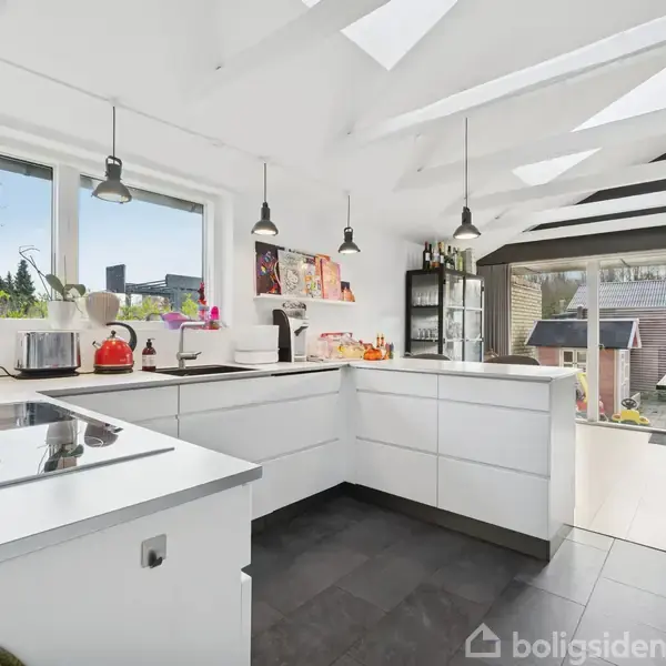 Denne rummelige og stilfulde villa er den perfekte ramme for en moderne familie. Beliggende på en af de mest eftertragtede adresser i området, kombinerer boligen luksuriøse faciliteter med funktionalitet og et indbydende hjem for alle familiens medlemmer. Huset er løbende vedligeholdt og fremstår i fremragende stand, der er blandt andet skiftet døre og vinduer. Man bydes velkommen af en stor møblerbar entré med adgang til gæstetoilet, hvor første indtryk lever op til villaens høje standard. Flot og stilrent køkken/alrum med moderne hårde hvidevarer, stor spiseafdeling og masser af plads til fælles måltider og samvær. Fra køkkenet er der direkte adgang til en imponerende stue med brændeovn, ovenlysvinduer og loft til kip, der skaber en lys og luftig atmosfære – ideelt til både afslapning og underholdning. Stort badeværelse med dobbeltvask og bruseniche, indrettet med fokus på funktionalitet og æstetik. To næsten identiske børneværelser med gode opbevaringsmuligheder og plads til leg og læring. Meget rummeligt soveværelse med stort indbygget skab. Værelset kan let opdeles til to separate rum, hvis der er behov for det. Indbydende og funktionelt bryggers med masser af skabsplads og vaskesøjle – et praktisk rum til hverdagen. Fra bryggerset er der adgang til et isoleret og opvarmet rum, som i dag fungerer som hjemmearbejdsplads og gæsteværelse. Rummet har mange anvendelsesmuligheder og kan let tilpasses efter behov. Der er desuden direkte adgang til carporten. Udendørsområde: Haven er nem at holde og byder på en stor græsplæne og en dejlig solrig terrasse, der omkranser huset på hele den ene side. En nedgravet trampolin til glæde for børnene og et perfekt sted at nyde solrige dage. Praktisk carport med videre adgang til huset. Øvrige Informationer: Fjernvarme: Huset er tilmeldt fjernvarme, og den eneste røde anmærkning i tilstandsrapporten vil kunne udgå, når fjernvarmeinstallationen er fuldt implementeret. Alt i alt en villa, der er absolut indflytningsklar – du kan flytte ind og begynde at nyde dit nye hjem med det samme.