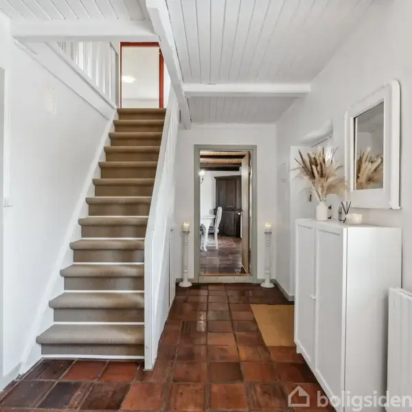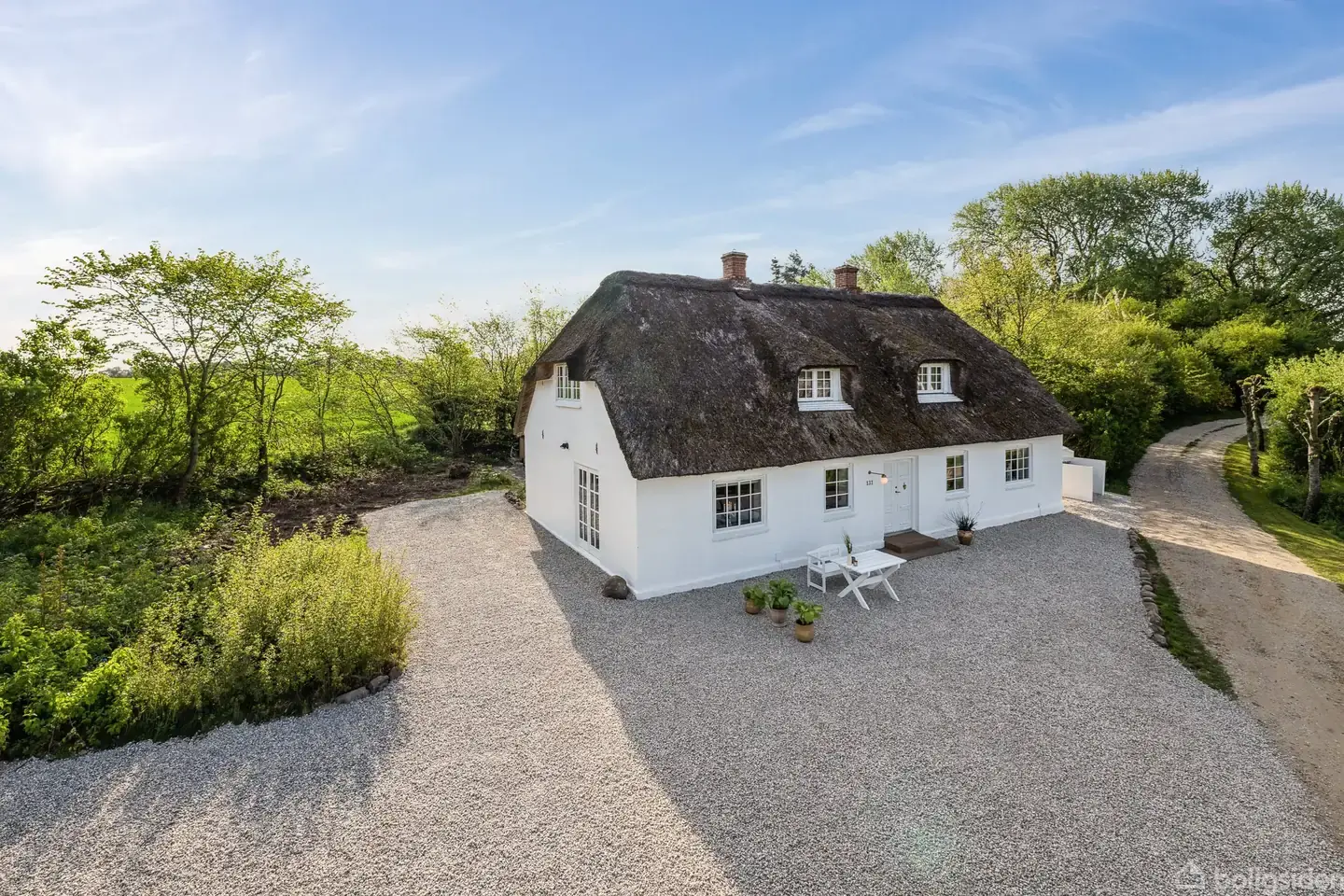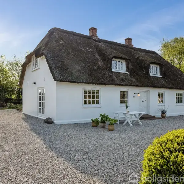 Drømmer I om at bo på landet, hvor roen sænker sig, og hvor man kan høre fuglene kvidre? Så tag et kig på denne skønne ejendom, hvor “idyl” er nøgleordet. Den store have føles nærmest som en park, fasanerne kigger forbi, og indenfor venter et hjem, der emmer af charme og hygge. I kommer til at bo på en stikvej, der fører op til Nørre Vinge Kirke, og ejendommen her er faktisk den gamle præstegård. Huset er oprindeligt fra 1870, men gennem årene er det renoveret og moderniseret. Stråtaget pynter