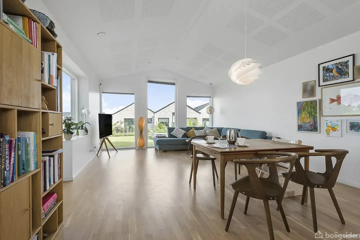 Drømmer du om et moderne og velindrettet hjem i rolige omgivelser – tæt på både natur og hverdagens bekvemmeligheder? Dette smukke halve dobbelthus fra 2022 ligger i et attraktivt og børnevenligt kvarter i Borup, og forener moderne arkitektur med funktionel indretning og hyggelig atmosfære. Boligen byder på 118 lyse og luftige kvadratmeter i ét plan, hvor der er tænkt over både æstetik og komfort. Loft til kip, akustiklofter og store vinduespartier skaber en åben og indbydende stemning og giver