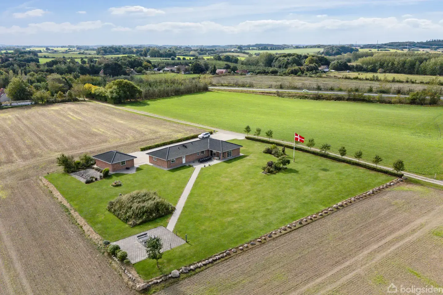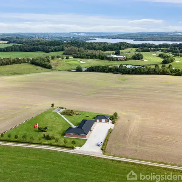 Moderne villa med 7,2 ha og naturskøn beliggenhed ved Tange Sø GolfklubVelkommen til et indflytningsklart hjem fra 2016 med 160 m² i ét plan, energimærke A2015 og moderne bekvemmeligheder som gulvvarme, friskluftsystem og fibernet. Her får du både komfort og grøn økonomi – midt i naturen.Boligen byder på et stort køkken-alrum med udgang til terrasse og have, tre soveværelser, to badeværelser (inkl. soveværelsessuite), lys stue, rummeligt bryggers og depot. Dertil kommer dobbeltgarage samt fritst