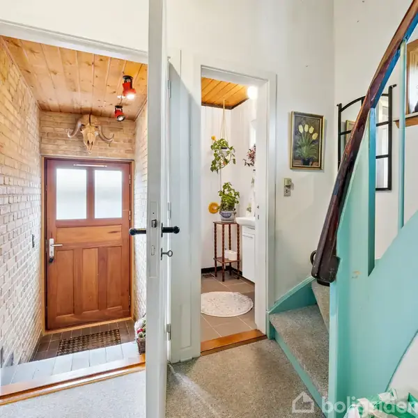 Nykøbing centrum - højtbeliggende villa Kunne du tænke dig at have have fast base? Et sted, hvor "alting", som byen tilbyder er indenfor rækkevidde? Uanset om det er indkøb, kultur, skole, spisesteder så er der kort afstand hertil. Her kan din hverdag gøres utrolig nem. Huset:Boligen fordeler sig over 3 plan med et boligareal på 101 m2 og en kælder på 68 m2. Stueplan:Entré med trin op til en mellemgang, hvor trappen op til 1. sal samt kælder er placeret. Gæstetoilet (tidligere badeværelse m. br