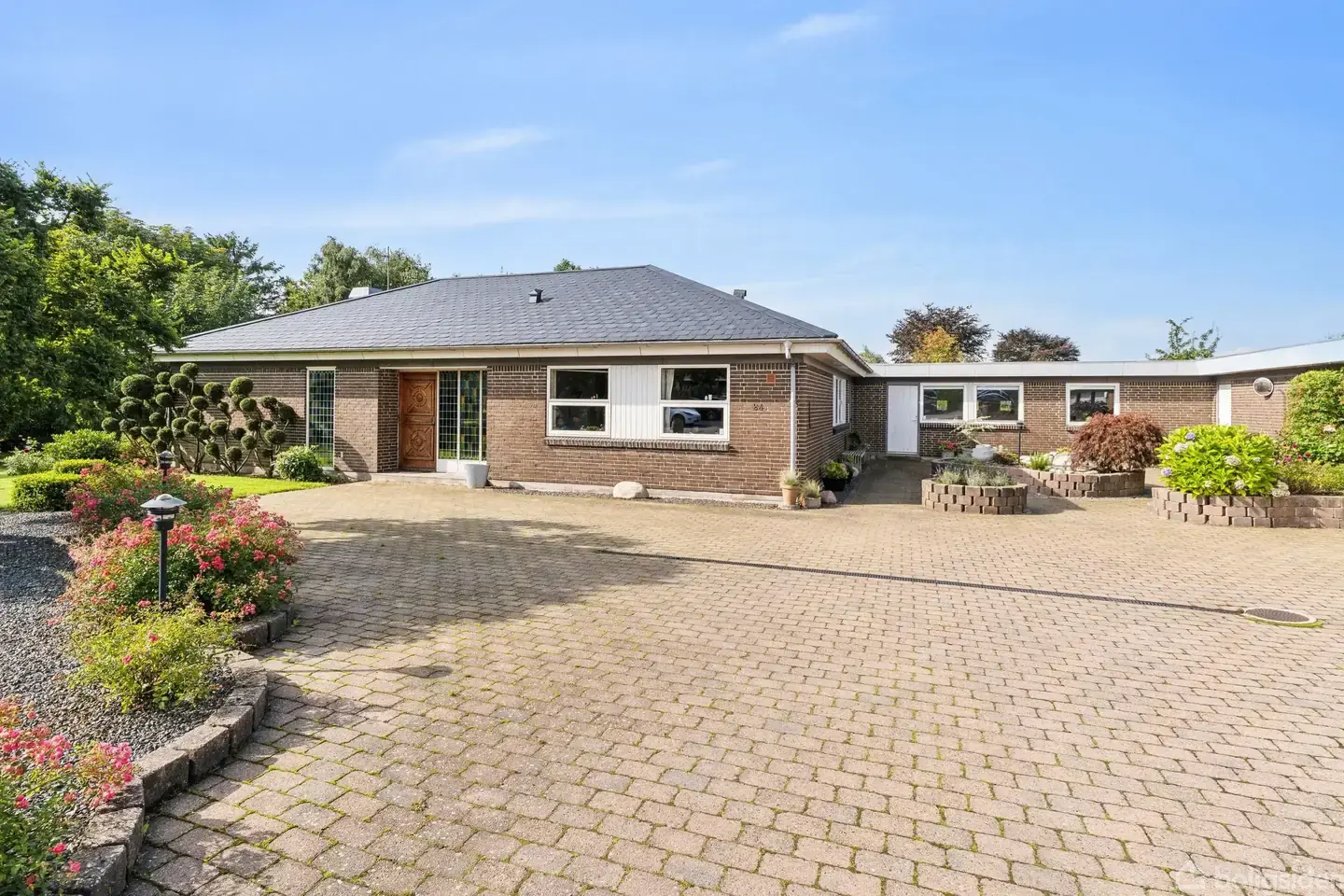 Velkommen til Højgårdsvej 24 i Farsø - Her venter jer en særdeles spændende ejendom med masser af muligheder. Ejendommen er opført i 1976 med 222 kvm boligareal og 230 kvm erhvervsareal (kan nedlægges som erhverv og registeres som garage og udhus) og endnu bedre er at alle kvm findes i et plan. Beliggenheden er også i top med en stor ugenert grund midt i attraktiv boligkvarter med masser af stisystemer og tæt på indkøb, søanlæg, skole mm. Flot etableret haveanlæg med flere blomsterbede og flotte planter. Flere gode terrasser med mulighed for læ og sol. I Farsø finder du alt indenfor rækkevidde af både specialbutikker, isenkram, tøj og dagligvarebutikker - det meste er tilmed samlet under samme tag i byens indkøbscenter. Huset er løbende renoveret og moderniseret, b. la. malet tag i 2018, køkken fra 2018, udskiftning til troldtekt lofter i de fleste rum, genveks, flotte skibsgulve og de fleste vinduer er udskiftet. Boligafdeling er godt indrettet og kan rumme en stor familie. Man bydes velkommen i en flot og stor entre med adgang til bryggers (2018) hvor der er flotte klinkegulve, gulvvarme, vaskemiljø og skuffearrangement, herfra adgang til stort køkkenalrum fra 2018 med masser af plads og store vinduespartier til terrasse og have. Køkkenalrummet er husets hjerterum og kan rumme mange gæster og samtidig velfungerende i dagligdagen med kogeø med siddepladser, alt i hårde hvidevarer og tilmed luksus dele om indbygget kaffemaskine, flere ovne, skabsfryser mm.Alrummet fordeler sig ud på 2 gode værelser, badeværelse, forgang og stor stue hvorfra der også er udgang til terrasse som er delvis overdækket. Fordelingsgang. 3 værelser og flot nyere badeværelse (2020) med 2 håndvaske nedfældet i stor bordplade med praktisk skuffearrangement nedenunder, væghængt toilet, klinkegulv med gulvvarme, bruseniche. Fra bryggers er der adgang til erhvervsdelen som er indrettet med kontor, toilet og diverse depotrum som evt. kan ligges sammen til et stort rum hvis man har brug for det. Stor garage med 3 elporte. Et hus som dette er meget sjælden til salg - vi glæder os til at vise jer alle dets muligheder - bestil en fremvisning allerede i dag!Har du selv en villa du skal have solgt ? Sælger kan være interesseret i at tage mindre villa i bytte - ring og forhør dig nærmere hos os på tlf. 70202511.