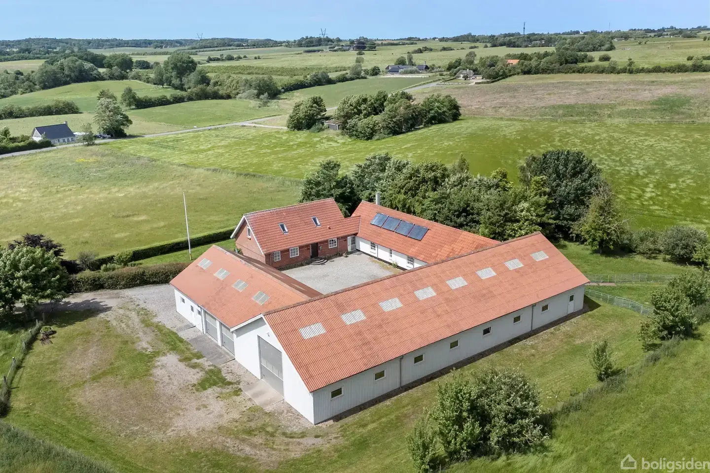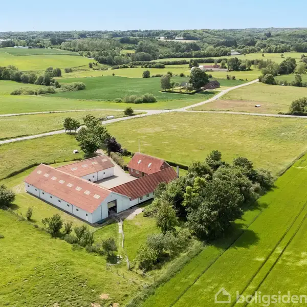 Åbent hus med tilmeldingskrav 19/2 - klik på billede - Velkommen til Solbakkegård – en charmerende landejendom i udkanten af Vejle, hvor naturen og freden får lov at fylde. Ejendommen kan også købes med mindre jord - mellem 2-2,5 ha. og til en pris på kr. 3.600.000 - mellem 4-4,5 ha til kr. 4.000.000 Allerede ved ankomst mærker man ejendommens sjæl: En smuk, træomkranset allé fører dig op til hovedhuset og de to store længer fra 2006. Her venter over 12 hektar jord – perfekte rammer til heste, får, dyrehold, hobbylandbrug eller blot uforstyrret naturglæde. Stuehuset rummer fire værelser samt en stor førstesal, der med fordel kan anvendes som teenageafdeling eller multirum. Derudover finder du en stor vinklet stue med køkken i forlængelse. Dertil kommer en uudnyttet tagetage, over værelsesafdelingen, med masser af potentiale – ideel til den kreative og handy køber. Men det er omgivelserne, der virkelig gør ejendommen enestående: fredelige marker, åbne vidder og en ro, der kun findes langt fra byens støj. Solbakkegård er en sjælden perle for dem, der drømmer om livet på landet – uden at gå på kompromis. Velkommen hjem.