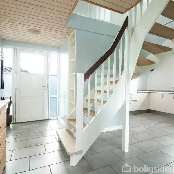 I dette velindrettede hus er der stor kombi entre / bryggers, hvor der er god plads til både overtøj, sko og vasketøjet. I stueetagen finder man ud over entre og brygger et fint åbent køkken alrum, der ligger lige op til den store lyse stue. Fra stuen er der adgang til både udestue og terrassen. Der er i stueplan også soveværelse og et badeværelse med brus.På 1. salen er der 3 store værelser og et stort badeværelse med kar. De to af værelserne har adgang til overdækket svalegang. Denne terrasse
