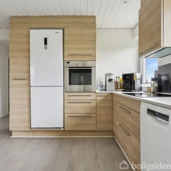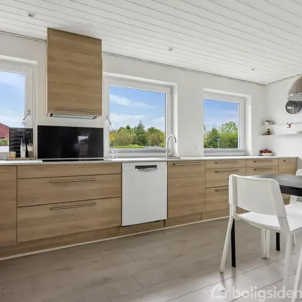 Denne renoverede villa fra 1972 byder på 135 m² veldisponeret bolig med tre rummelige værelser på en 816 m² stor grund i et skønt kvarter. Facaden er holdt i lyst murværk med en rummelig carport. Du bydes velkommen i den rummelige entré, der giver adgang til resten af boligen. Her er alle funktioner samlet i et enkelt plan, hvilket skaber en overskuelig og praktisk hverdag for familien. Indretningen favner både privatliv og fællesarealer med et stort opholdsrum bestående af køkken og stue i åben