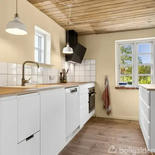 Dejlig villa i naturskønne omgivelser Landskaberne omkring ejendommen er smukke. Markerne breder sig til snart sagt alle sider, og ikke ret langt herfra er der store skove. Adressen hedder Højrupgyden 12, og foruden de behagelige omgivelser og korte afstande til både Verninge og Glamsbjerg får I her masser af ro, en dejlig bolig og en skøn, solrig have. Udefra fremstår villaen med en gul facade, der ledsages af hvide vinduesrammer. Inden døre er det især det store opholdsrum med køkken og stue