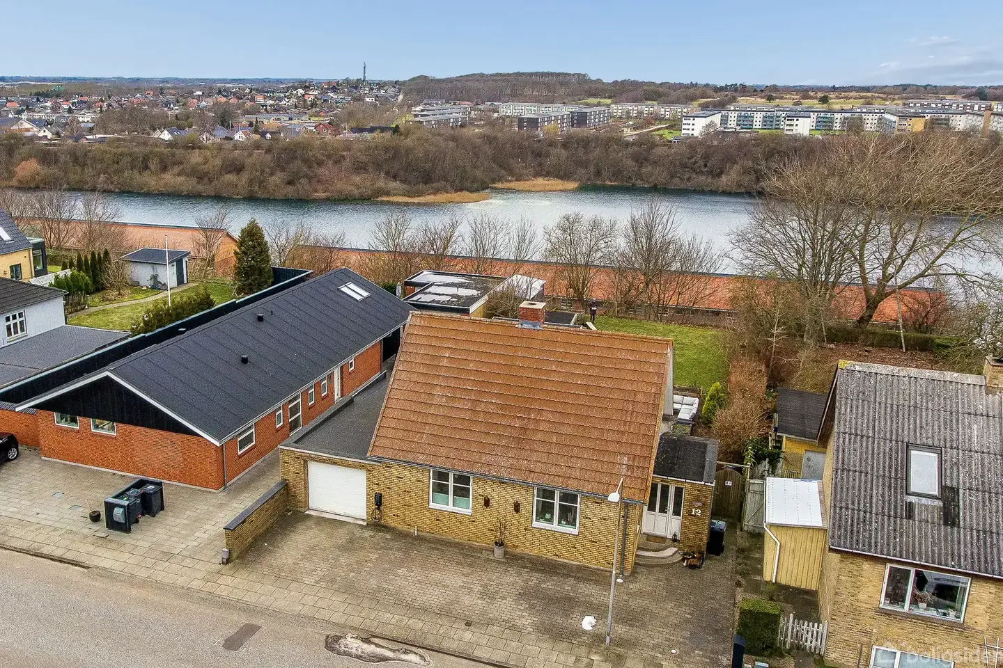 Flot istandsat villa med udsigt til vand, natur og by Et dejligt hjem med storslået udsigt. Det er udsigten, der først løber med opmærksomheden, for jeres nye hjem ligger højt i landskabet og som nabo til Lindholm Søpark, så I kan se ud over både vand, by og natur. Herefter vil I falde for det dejlige hus: en gulstensvilla, der er lys, indbydende og løbende renoveret.Med hverdagen i det nære nabolag.I får Lindholm Søpark som en af jeres nærmeste naboer, så naturen venter i “baghaven”, og I kan