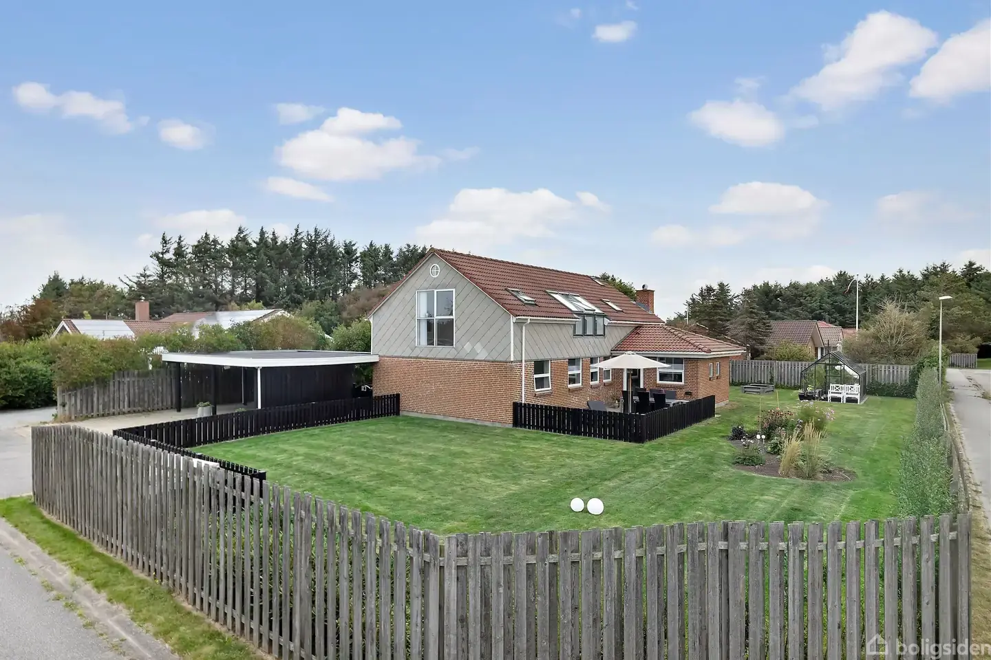 Åbent hus med tilmeldingskrav 3/2 - klik på billede - Velkommen til Hølken 23 - en rummelig og gennemrenoveret villa beliggende i et fredeligt og attraktivt kvarter i hjertet af Løkken. Her får du en bolig med hele 209 m² som rummer 4 gode værelser samt to stuer, hvilket giver masser af plads til både børnefamilien, eller dem der ønsker en ejendom med mulighed for hjemmekontor eller hobbyrum. Boligen er opført i 1987 og senere ombygget i 1992, hvilket afspejles i den funktionelle planløsning og de gode lysindfald fra de store vinduespartier. Her mødes du af et lyst og indbydende køkken i åben forbindelse med opholdsstue og spisestue - et naturligt samlingspunkt for både hverdag og gæster. Boligen rummer desuden to badeværelser, hvilket sikrer komfort og fleksibilitet i hverdagen - særligt for den større familie. Ejendommen opvarmes primært med el og har desuden brændeovn som et hyggeligt og økonomisk supplement. Udenfor venter en overskuelig og velanlagt grund på 895 m² med god plads til leg, afslapning og udendørs hygge. Flere solrige terrasseområder giver mulighed for at nyde sommeren i fulde drag, og haven ligger ugeneret og fredeligt. Til ejendommen hører desuden en praktisk carport samt et redskabsrum/skur, som giver god plads til opbevaring af både cykler, haveredskaber og brænde. Beliggenheden er ideel - du bor i gåafstand til både skole, indkøb og centrum af Løkken, samtidig med at du har kort afstand til Vesterhavets brede sandstrand og naturskønne områder. Her får du det bedste fra to verdener, nemlig byens bekvemmeligheder og naturens ro, samlet i en solid og indflytningsklar bolig med mange anvendelsesmuligheder.