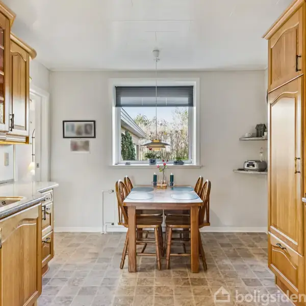 Velkommen til denne skønne og velholdte ejendom på Hølleskovvej 1 i Spandet, blot en kort køretur fra Ribe. Her får du en rummelig bolig med masser af plads – perfekt til den store familie eller dig, der drømmer om luft, lys og grønne omgivelser.Boligen byder på hele 214 kvadratmeter bolig fordelt på to plan. Huset er opført i 1920 og er løbende renoveret i sælgernes ejertid, så det i dag fremstår både indbydende og funktionelt.Køkkenet ligger centralt i huset og har adgang til et praktisk viktu