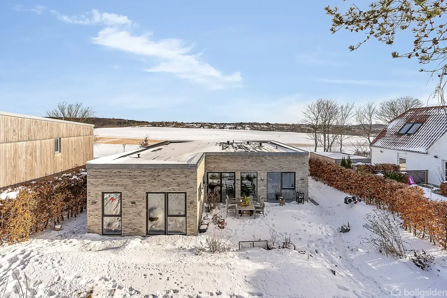 Søger I en plug and play-løsning med minimalt behov for vedligehold de næste mange år, hvor kvalitet og funktionalitet går hånd i hånd? Så skal I kigge nærmere på Høvej 26A, som er en fuldstændig indflytningsklar 1-plans villa opført af Huscompagniet i 2022 i naturskønne omgivelser.Her venter jer 160 velindrettede kvadratmeter med ekstra loftshøjde i hele huset. I får et fantastisk samlingspunkt til både hverdag og fest: Der er et indbydende køkken-alrum i åben forbindelse med god opholdsstue –