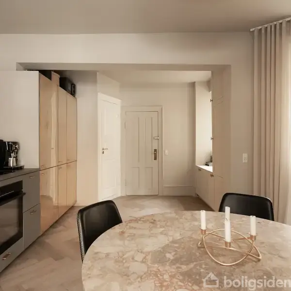 Der findes boliger midt i byen, hvor man stadig kan høre stilheden. Ikke fordi byen er langt væk, men fordi roen har fundet vej helt ind. Gemt i baghuset, trukket væk fra gaden og byens puls, møder man en atmosfære, der føles rolig og helstøbt fra første skridt. Gulvvarmen breder sig som en stille luksus under fødderne, den slags man hurtigt bliver afhængig af. Rummene hænger ubesværet sammen, lyset finder sin egen vej gennem boligen i løbet af dagen, og helheden føles varm, let og hjemlig. Her
