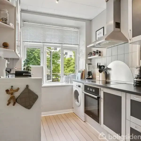 Indflytningsklar 2 vær. med altan i gåafstand fra Aalborg CFremstår nymalet og kan overtages STRAKS- Stor 7,5 kvm. vestvendt altan- Fint køkken- Dejlig badafdeling- Stor stue og soveværelse- Brugsret til loftsrum- Dørtelefon- Sund og veldrevet ejerforeningBELIGGENHED:Du finder denne indflytningsklare lejlighed i starten af Aalborg Vestby med gåafstand til Aalborg Centrum og alt det som pulserende byliv kan tilbyde dig.Samtidig er der kort afstand til Aalborg havneområde, grønne områder og lystbådehavn. Offentlig transport og handelsmuligheder er selvfølgelig lige rundt om hjørnet.Kort sagt, en meget attraktiv beliggenhed med kort afstand til alt.BESKRIVELSE BOLIG:Velkommen indenfor i entré, hvorfra du ledes ind i den store stue med plads til både spisebord og sofagruppen. Stort soveværelse med adgang til fint badeværelse fra 2014 med bruseafdeling og udsugning, samt udgang til stor vestvendt altan. Der er fint separat toilet i samme stil som badeværelset og flot lyst køkken der er istandsat i 2016, samt kombineret vaskemaskine/tørretumbler. Som nævnt er der dejlig stor nyere vestvendt altan med sol hele eftermiddagen og aftenen. Her er der god plads til grill og hygge med vennerne.Tilhørende gårdhave og cykelskur.En skøn lejlighed og beliggenhed der SKAL opleves.