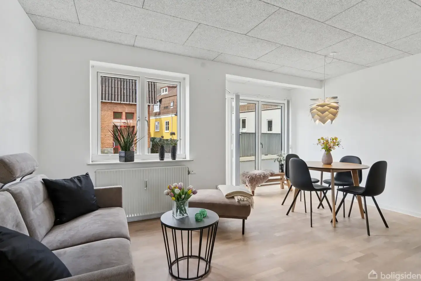 På Holbergsgade 1D ligger denne skønne og indflytningsklare lejlighed på 64 m2. Du får her en lejlighed som er rummelig og lys, samtidig med at den er super godt udnyttet. Lejligheden byder indvendigt på en entre, køkken, badeværelse, alrum og stue i forbindelse, samt et værelse og et disponibelt rum. Derudover har man en terrasse og parkeringsplads til lejligheden, lige bag ved lejligheden.Lejligheden har i 2019 gennemgået en totalt modernisering, hvor der blandt andet er blevet istandsat lofte