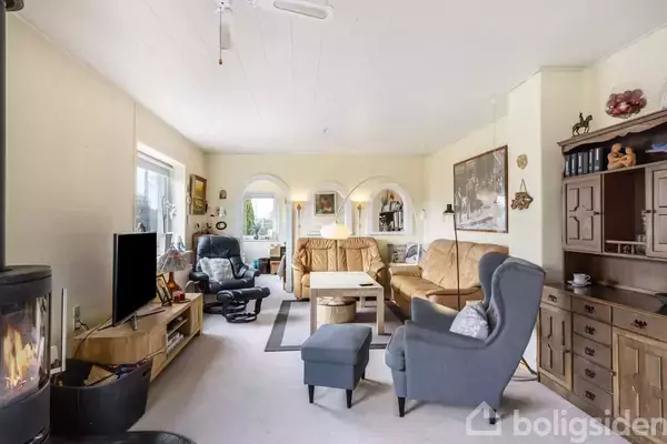 Hyggelig bolig med masser af opbevaringsplads, en fin kælder med mange gode rum og en pris der gør, at du kan bo billigere her end ved at leje. Ejendommen er godt isoleret og så er der brændeovn, hvilket betyder, at forbrugsudgifterne også kan holdes på et nogenlunde lavt niveau. Mulighederne er mange i forhold til planløsningen, hvis der f.eks. ønskes flere værelser. Du kommer op ad trapperne og ind i entréen, som fører dig til badeværelset, til den store dobbeltstue og til køkkenet med spis