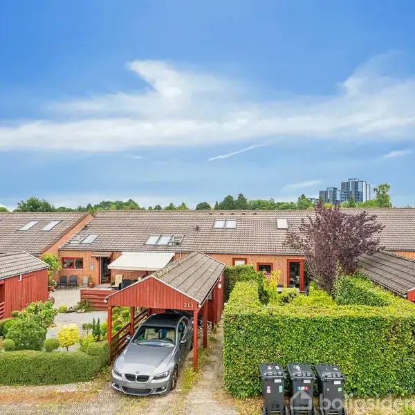 Velkommen til én af de sjældent udbudte og populære, fuldmurede rækkevillaer på Holmstruphøjvej; her i nr. 213. De 18 ens rækkehuse ligger på den sidste og øverste stikvej – lige ud til herlige, grønne arealer, hvor der er rig mulighed for boldspil og andre lege, der kræver plads. For enden af den lukkede vej findes en legeplads, som vedligeholdes af vejens beboere med en årlig arbejdsweekend. Dette og flere andre sociale aktiviteter gør, at man hurtigt rystes sammen med naboerne på den lille ve