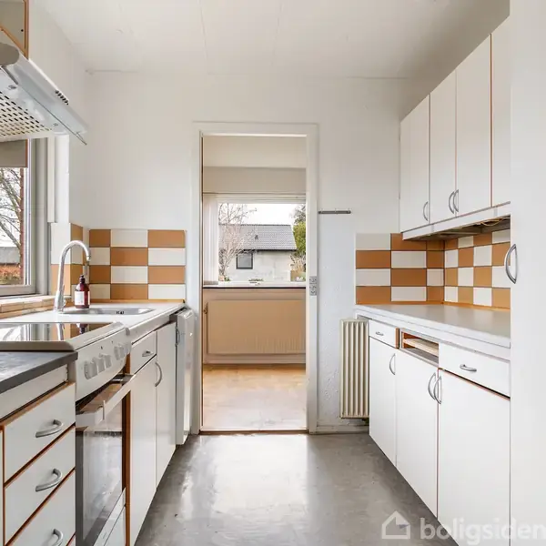 Villa med klassisk profil og funktionel indretning, der giver familien både plads og struktur. Fire soveværelser, to badeværelser og bryggers med egen indgang skaber et solidt udgangspunkt, hvis du vil forme et personligt hjem uden at gå på kompromis med de grundlæggende rammer. Boligen fremstår enkel og ærlig og henvender sig til købere, der ser potentialet i at opgradere efter egne ønsker. Den store stue har plads til både spisebord og sofaarrangement. Fra stuen er der direkte udgang til en o