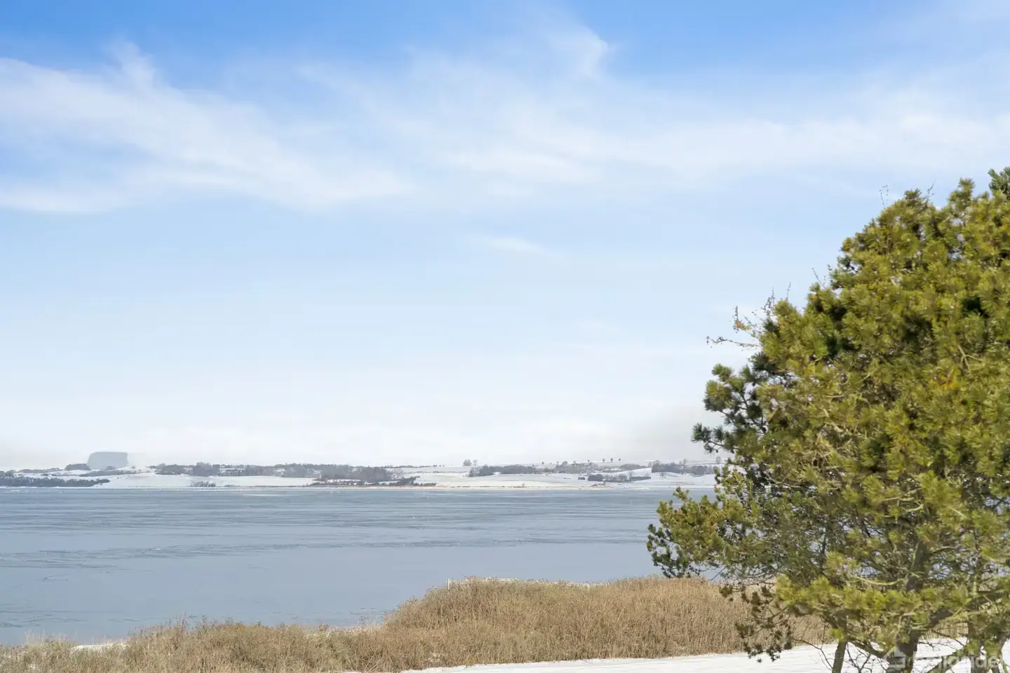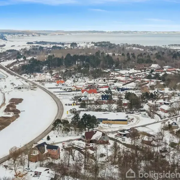 I kystbyen Kongsgårde på den naturskønne halvø Helgenæs ligger denne store rødstensejendom – et solidt fritidshus med panoramaudsigt over Begtrup Vig. Ejendommen er placeret i første række til vigen og er samtidig tilbagetrukket fra kysten, mens skoven grænser op til grunden bagtil. Udsigten er derfor præget af det åbne hav til den ene side og de tætte trækroner til den anden. Selve huset er opført i 1986 og rummer 222 kvadratmeter, og der medfølger en muret dobbeltgarage såvel som en sydvendt h