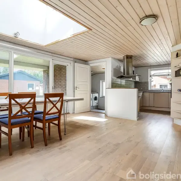 Velkommen til denne charmerende villa i røde mursten, der strækker sig over 148 kvadratmeter Denne bolig, bygget i 1957, præsenterer sig med en varm og hjemlig stemning, hvor der er plads til både samvær og privatliv. Den åbne planløsning mellem stue og køkken skaber en lys og rummelig følelse, hvor det naturlige lys strømmer ind gennem de store vinduer og giver en dejlig udsigt til haven. Villaen rummer tre gode værelser, der kan tilpasses familiens behov, samt et funktionelt badeværelse.