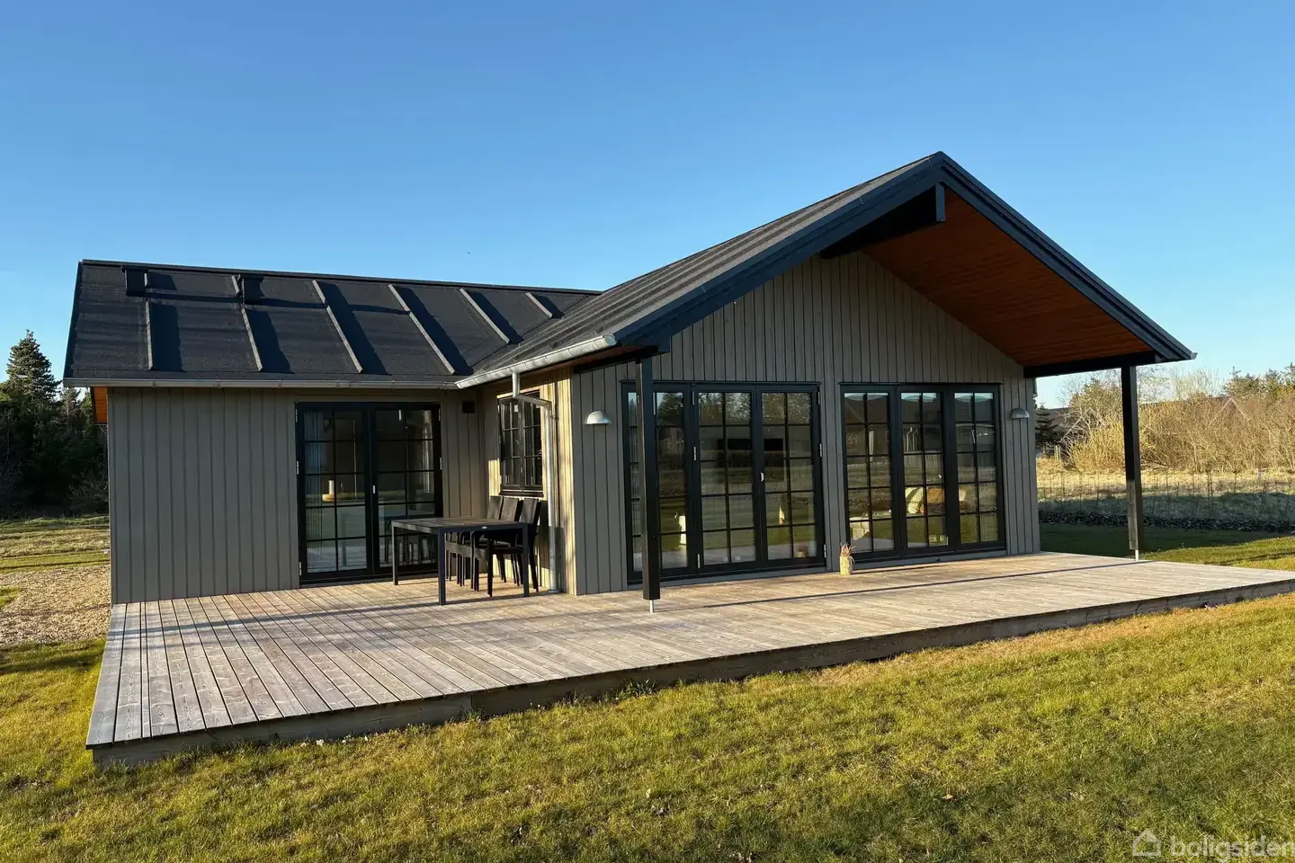 I gå-afstand fra 18 hullers golfbane, skov og legeplads har PLANET-HUSE på 1.769 m2 stor randbeplantet grund opført dette dejlige kvalitets-fritidshus på 95 m2 i T-facon med 48 m2 trykimprægneret delvist overdækket sydvendt terrasse og 2 befæstede p-pladser. Huset fremtræder i lysebrunt træværk og listetækket paptag, småsprodsede træ-thermo-energivinduer m/3 lags glas og zink-tagrender og opvarmes med Panasonic varmepumpe luft-luft, termostatstyrede el-panel-radiatorer og gulvvarme i klinkegulv i badeværelser. Indretning : Entrè med hvide skabe og adgang til badeværelse med brusenichè m/klinker og glasvægge, toilet, håndvask, skabe og spejl. Fra entrè adgang til 2 gode børneværelser med indbyggede skabe 6,6 m2 og 10 m2. Stor vinkel-opholdsstue med dør til overdækket terrasse mod syd og spiseplads ud for kogeøen i det elegante hvide køkken, der naturligvis har alt i hvidevarer. I stuen er indbygget hyggelig alkove og opgang til hems med ekstra sovepladser. 2 sovepladser, børn og børnebørn vil elske. Forældre-soveværelse med indbyggede skabe og adgang til eget privat badeværelse med glas-brusenichè, vask og toilet. Sælges fuldt møbleret, også med tv, gardiner, havemøbler mv - lige klar til udlejning. Stor lejeindtægt kan påregnes. Novasol har over for sælger estimeret en netto lejeindtægt pr år til ejer på 190.000 - 210.000 ved 36 ugers udlejning "as is" og hvis der etableres aktivitetsrum samt udendørs wellness (spa og/eller sauna) estimerer bureauet 270.000 - 290.000, heraf er 50.200 + 40% af resten skattefrit, så det er også en fin investerings-ejendom og et godt alternativ til eller supplement til pensionsopsparing. Gulve i opholdsrum er vedligeholdelsesvenligt laminat, i badeværelser klinker. BEMÆRK : UDBUDSPRISEN INDEHOLDER EN RABAT I FORHOLD TIL LISTEPRISEN I DAG (4.250.945) PÅ HELE 462.945 SKATTEFRIT OG STADIG MED 1 ÅRS NY-GARANTI FORUDSAT HURTIG OVERTAGELSE, DA HUSET HAR VÆRET ANVENDT TIL UDSTILLINGSHUS, MEN ALDRIG ANVENDT TIL OVERNATNING ELLER UDLEJNING. SÆLGES MED MANGELS-GENNEMGANG OG UDBEDRING AF EVENTUELLE MANGLER OG YDERLIGERE GENNEMGANG FOR OG UDBEDRING AF MANGLER CA 1 ÅR EFTER OVERTAGELSEN. RABATTEN ER FRATRUKKET UDBUDSPRISEN 3.788.000 OG ER NATURLIGVIS SKATTEFRI, SÅ HER ER TALE OM EN VIRKELIG GOD INVESTERINGSMULIGHED UD OVER DET SÆDVANLIGE. KLAR TIL INDFLYTNING/UDLEJNING NU. VI TØR GODT SIGE, AT DET EFTER VOR OPFATTELSE ER ET AF MARKEDETS ALLERMEST ATTRAKTIVE KØBSTILBUD LIGE NU - BÅDE TIL EGET BRUG, SOM INVESTERING ELLER EN KOMBINATION HERAF. ØNSKES ANDET HUS, KAN VI TILBYDE FLERE GRUNDE I SAMME OMRÅDE TIL OPFØRELSE AF ANDET PLANET FRITIDSHUS : Horsevej 6 1.707 m2, heraf vej 402 m2 Pligt til Planethus 1.448.000 Projekt ikke lavet Uden denne pligt 1.598.000 Duevej 1 B 1.556 m2, heraf vej 212 m2 Pligt til Planethus 1.298.000 Projekt ikke lavet Duevej 3 1.214 m2 Pligt til Planethus 1.448.000 Projekt er lavet ! Besigtigelse efter aftale, kontakt *75 136300/aften & weekend evt. 24857612.