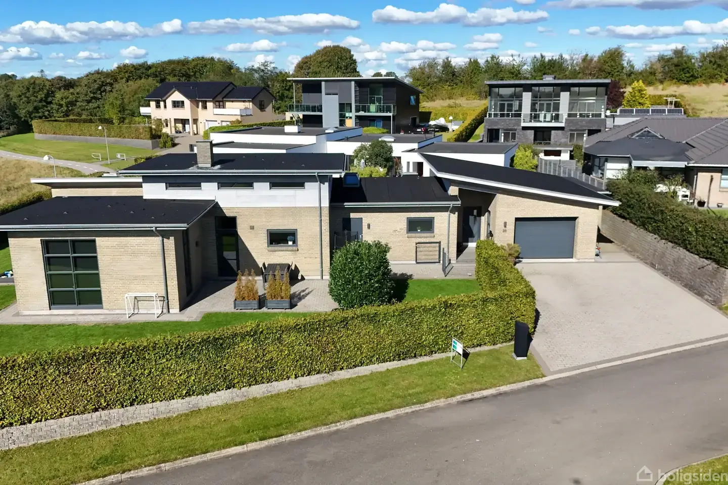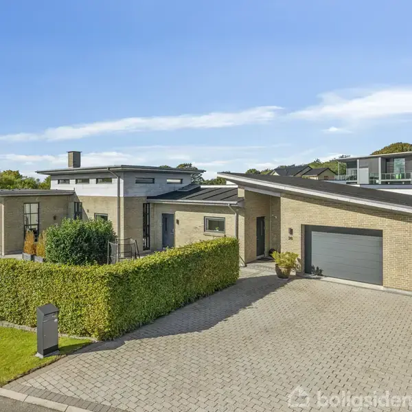 Når hverdagen skal fungere uden kompromisser, og weekenderne skal nydes i smukke omgivelser, så er denne villa i Hobros nordlige kvarter i Hostrupkrogen et helt oplagt valg. Her forenes flot arkitektur, gennemtænkt indretning og praktiske løsninger på 183 m² med en stor integreret garage, teknikrum samt værksted – en bolig, der er skabt til at gøre livet lidt lettere og meget mere indbydende.Villaen er opført i 2008 i et stilrent udtryk med murstensfacade, tagpaptag og elegante træ/alu-vinduer,