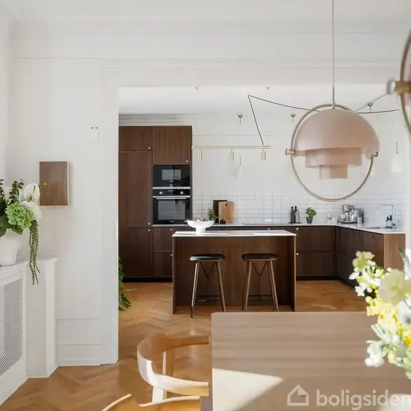 Lejligheden er renoveret med stor sans for detaljen. De smukke sildebensparketgulve uden dørtrin skaber et eksklusivt og harmonisk udtryk. Alt fremstår æstetisk og gennemtænkt med velvalgte løsninger. Det gælder ikke mindst det lækre køkken i mørk eg fra Reform, hvor intet er overladt til tilfældighederne. Dybe skuffer, en stilren bordplade og generøse arbejdsflader understreger den høje kvalitet og det gennemførte udtryk. De elegante stuer en suite giver masser af lys og luft og understreger lejlighedens herskabelige karakter. Køkkenet er flyttet fra det mindste værelse ind i den ene stue, hvilket har givet lejligheden et helt nyt udtryk. Den nye placering har samtidig gjort det muligt at lave et stort soveværelse mod gården med ro, luft og indbyggede skabe fra gulv til loft. Derudover er der et ekstra værelse, som kan bruges som kontor, børneværelse eller gæsteværelse – alt efter behov. Skulle der være brug for tre reelle soveværelser, kan den nuværende sofastue nemt omdannes til et stort soveværelse/kontor. Badeværelset blev renoveret i 2020 og fremstår lyst og indbydende med masser af plads samt vaskesøjle. I entréen er der gode muligheder for at hænge overtøj og stille sko. Lejligheden ligger på fjerde etage, så man kan nyde hverdagen uden overboer. Der har tidligere været gennemført altanprojekt på ejendommen, men denne lejlighed valgte ikke at få opsat altan. Hvis man ønsker altan, skal det godkendes i ejerforeningen og hos kommunen. Ejendommen, der er opført i 1904, fremstår dekorativ med flot indgangsparti og rummelig opgang. Ejerforeningen fungerer rigtig godt og har en hyggelig, aflukket gårdhave med masser af grønt, legehus og fælles havemøbler. Der er også god plads til cykler og ladcykler. To parkeringspladser kan reserveres af ejendommens beboere efter behov. Til lejligheden hører brugsret til to rummelige depotrum på loftet, som er nemme at komme til via bagtrappen – virkelig smart og praktisk med ekstra opbevaringsplads. Hostrupsvej er opkaldt efter Jens Christian Hostrup, som var forfatter og boede i området i 1800-tallet. Vejen er meget centralt beliggende tæt på Falkoner Allé, Forum og Landbohøjskolens Have. Du har altså både det grønne og byens puls lige uden for hoveddøren. Der er nem og bekvem adgang til alt det, Frederiksberg har at byde på. Med adresse på Hostrupsvej bor man i hjertet af det hele. Det er få skridt til Landbohøjskolen og den smukke blomsterhave, som giver kvarteret en grøn og rolig stemning. Samtidig ligger caféer, specialbutikker og restauranter på Falkoner Allé lige om hjørnet, og dagligvarer samt metro ved Frederiksberg Centret er nemme at nå. Rådhuspladsen er kun ti minutter væk på cykel, så man får både ro og byliv på én gang. Velkommen til Hostrupsvej 13.