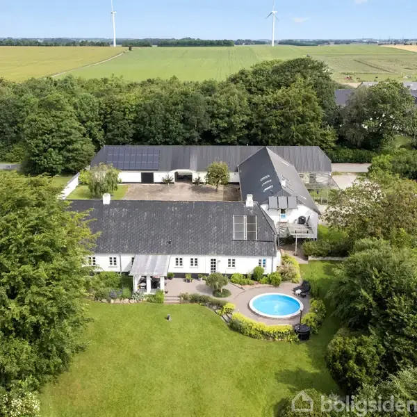 Drømmer du om livet på landet, hvor både stuehus, udbygninger og jord går op i en højere enhed? Så behøver du ikke lede længere. På Houmarksvej får du den komplette landejendom – smukt beliggende og med en sjælden kombination af funktionalitet, charme og moderne komfort. Stuehuset byder på hele 5 værelser, 2 badeværelser samt et gæstetoilet. Det store køkken-alrum oser af landlig charme og er det naturlige samlingspunkt i hjemmet, mens den rummelige vinkelstue med pejs skaber en hyggelig atmosfære. Dertil kommer endnu en stue, som i dag er indrettet til billardrum – perfekt til underholdning og afslapning. Selvom huset oprindeligt er opført i 1850, lever det op til A2010-isoleringskrav, hvilket sikrer en lav varmeudgift og en god energimæssig komfort året rundt. Her er desuden bevaret mange fine originale detaljer som synlige bjælker og ældre døre, der understreger husets sjæl og karakter. Udhusbygningerne giver et væld af muligheder. Her finder du blandt andet et stort værksted med gulv-til-loft-port – oplagt til både erhverv, håndværk eller hobbyprojekter. Derudover er der indrettet en stor gildesal med både køkken og toilet, som egner sig perfekt til sammenkomster, fester eller endda som kontormiljø. Udenfor mødes du af en charmerende gårdsplads, flere hyggelige kroge og en parklignende have med nedgravet pool – ideelt til både afslapning og leg. Ejendommen giver også rig mulighed for dyrehold, fx heste, og der er god plads til at leve det frie liv under åben himmel. Her får du ikke bare en bolig – men en livsstil. Velkommen til Houmarksvej.