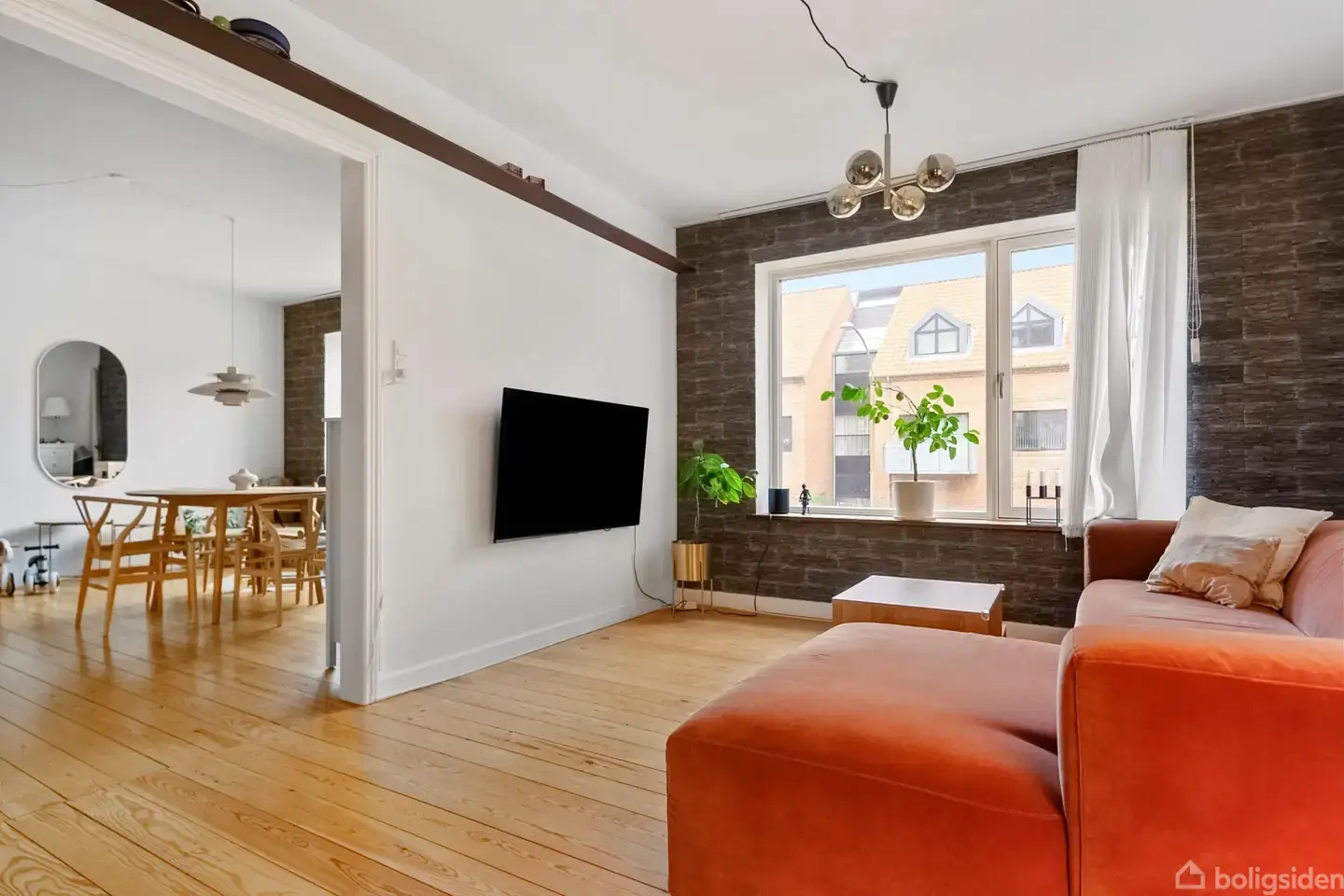 Åbent hus med tilmeldingskrav 1/3 - klik på billede - Drømmer du om en lys og rummelig lejlighed med en central beliggenhed og grønne omgivelser lige i nærheden? Så er denne indflytningsklare 4-værelses lejlighed, med flottet detaljer med blandt andet med opmuret stonewall i stuen, midt på Hovedgaden i Brabrand et oplagt valg. Der er løbende foretaget forbedringer - boligen er blandt andet opdateret med elinstallationer, alu/ vedligeholdelsesfrie energiruder fra 2018 samt ny branddør med elektronisk låsesystem. Boligen byder dig velkommen i en praktisk entré med plads til overtøj og fører videre til et stilfuldt køkken fra Svanekøkken. De to lyse stuer har et skønt lysindfald og giver masser af plads til både ophold og samvær. Lejligheden rummer desuden et soveværelse med indbyggede skabe samt et ekstra værelse i forlængelse af den ene stue – perfekt som kontor, børneværelse eller gæsteværelse. De flotte plankegulve i stuer og værelser understreger boligens elegante udtryk. Badeværelset fremstår lyst og velholdt med brus, hvide klinker og nye flotte skabselementer. Til ejendommen hører en hyggelig fælles have, hvor sommeren kan nydes, samt adgang til fælles vaskeri, tørrekælder, cykelkælder og eget kælderrum. Der er desuden mulighed for fælles parkering i gården. Der må holdes husdyr i ejendommen. Beliggenheden er ideel med få minutters gang fra Brabrand Sø og den smukke stiforbindelse rundt om søen på ca. 9–10 km. Samtidig har du indkøb, institutioner, grønne områder og offentlig transport lige i nærheden – og nem adgang til Aarhus midtby. En attraktiv bolig, der kombinerer lys, plads og en beliggenhed, der giver det bedste fra både natur og byliv.