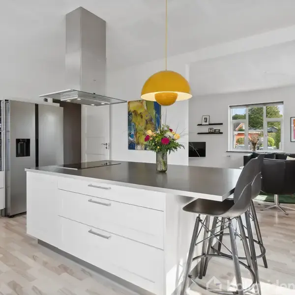 Velkommen til Hovedgaden 48 – en stor og charmerende murermestervilla, der gennem årene er løbende moderniseret og i dag fremstår som et solidt og rummeligt hjem med masser af muligheder. Med hele 211 etagemeter fordelt på 3 plan er her plads til den store familie, flere generationer eller jer, der ønsker god plads til både hverdag og hobbyer.Stueetagen byder på store, lyse opholdsrum, hvor det moderne køkken-alrum fungerer som boligens naturlige samlingspunkt. Herfra er der direkte udgang til d