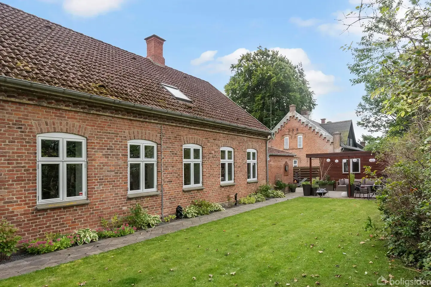 Klassisk og smuk rødstensvilla, opført i 1855, hvor mange af de oprindelige charmerende detaljer er bevaret på den bedste måde og tilbygget i 1996. Det smukke hjem er beliggende tæt på jernbanen, med havelåge, så I hurtigt kan komme til stationen af ”bagvejen”. Det er over 170 år siden, at de gedigne mure blev opført og de har siden dannet rammen om skønne hjem for flere familier. Men nu kan I blive budt velkommen indenfor til en herskabelig villa, og I kan roligt glæde jer, til at komme og opleve dette skønne hjem på Hovedgaden 7C i Borup. I bliver taget godt imod i den smukke entré, hvor der er god plads til overtøj og sko. Og med adgang til bryggers fra entréen giver dette lidt ekstra opbevaring til alle sæsonernes overtøj samt mulighed for at ”lukke af” for vasketøj og andet praktisk rod. Der er ligeledes et godt værelse/kontor i forbindelse med entréen. I stueplan får I en dejlig stor stue med klinkegulv, højt til loftet og et imponerende lysindfald fra de store dannebrosvinduer. Her er der god plads til det lange spisebord men og til den helt store sofagruppe. Stuen er delvist åben til det flotte L-køkken hvor der er masser af opbevaringsplads og god plads til at I kan samles om madlavningen i køkkenet. I stueplan er der en hel forældreafdeling med et dejligt soveværelse, separat walk-in-closet og badeværelse med brus. Hvis I drømmer om at have en hel afdeling for sig, så er der ligeledes egen indgang i denne afdeling. Førstesalen byder på hele 5 værelser samt en mellemgang indrettet med plads til en lille hyggelig læsekrog samt et toilet. Her er det helt oplagt (for den store eller pladskrævende familie) at have børneafdeling. I kan også nemt nedlægge et par værelser og have en ekstra stue på førstesalen. Haven er anlagt nemt og fint med flere overdækkede hyggekroge, mulighed for boldspil og en god placering for trampolinen samt urtehave. Her er ligeledes et super fedt isoleret værksted med varmepumpe. Vi befinder os i gåafstand fra gode, indkøbsmuligheder og stationen samt midt mellem byens to skoler. Og med en "lidt friskere gåtur" kommer du også hurtigt ud i skoven, rundt om Kimmerslev sø og til endnu flere indkøbsmuligheder... Starter du bilen, er der blot 5 minutters kørsel til motorvej mod både København, Odense og Rødby.